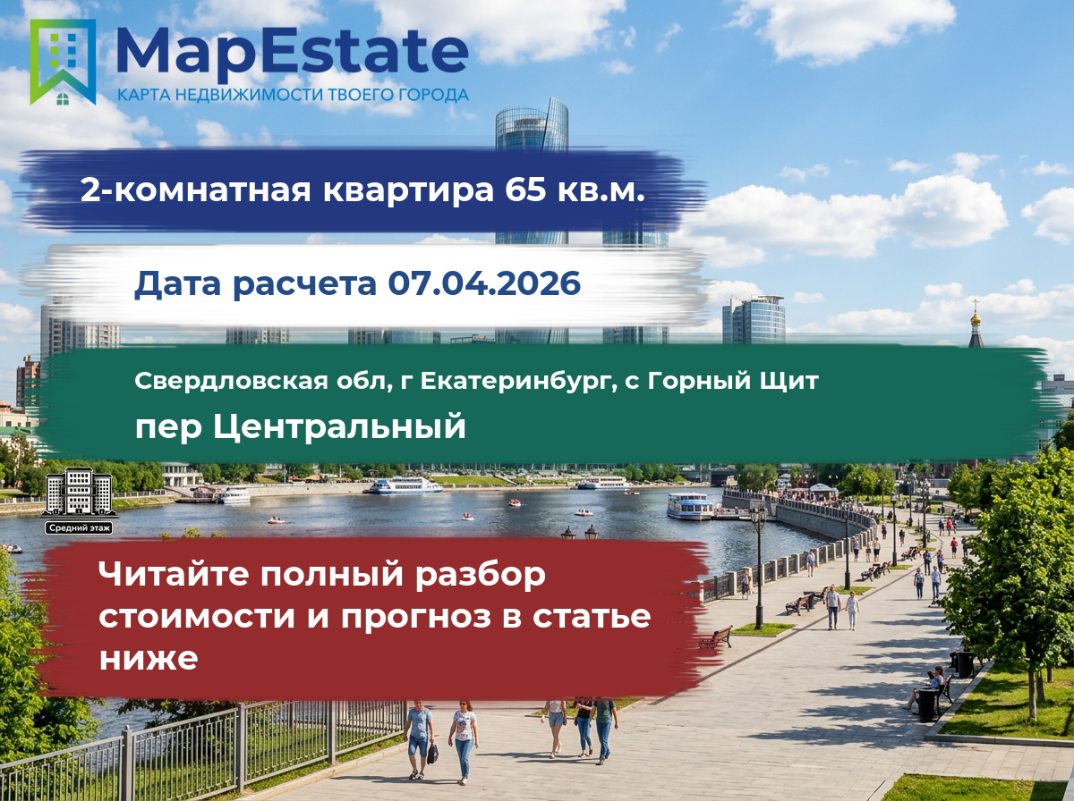 Сколько стоит квартира 65 м² в свердловская обл, г екатеринбург, с горный щит, пер центральный?