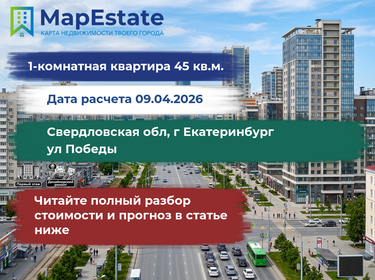 Сколько стоит квартира 45 м² в свердловская обл, г екатеринбург, ул победы?