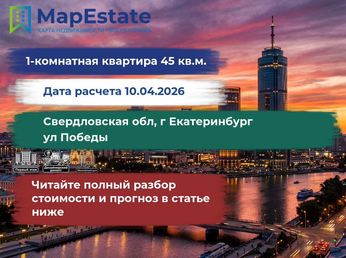 Сколько стоит квартира 45 м² в свердловская обл, г екатеринбург, ул победы?