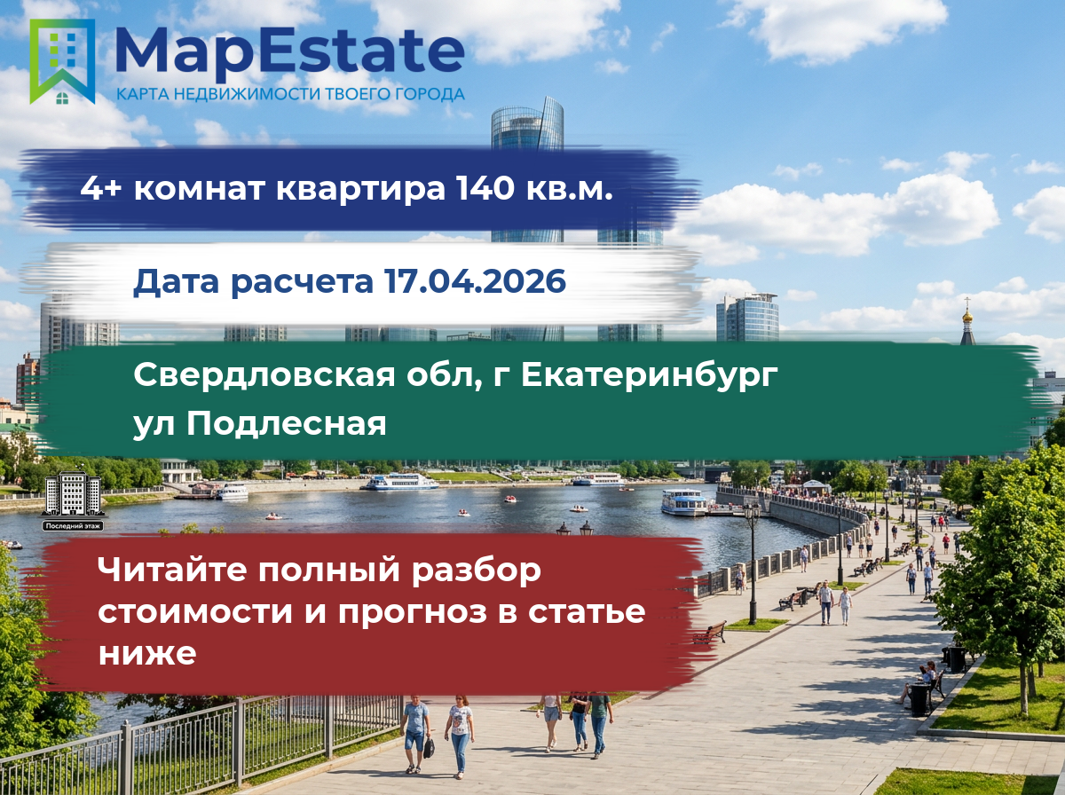 Сколько стоит квартира 140 м² в свердловская обл, г екатеринбург, ул подлесная?