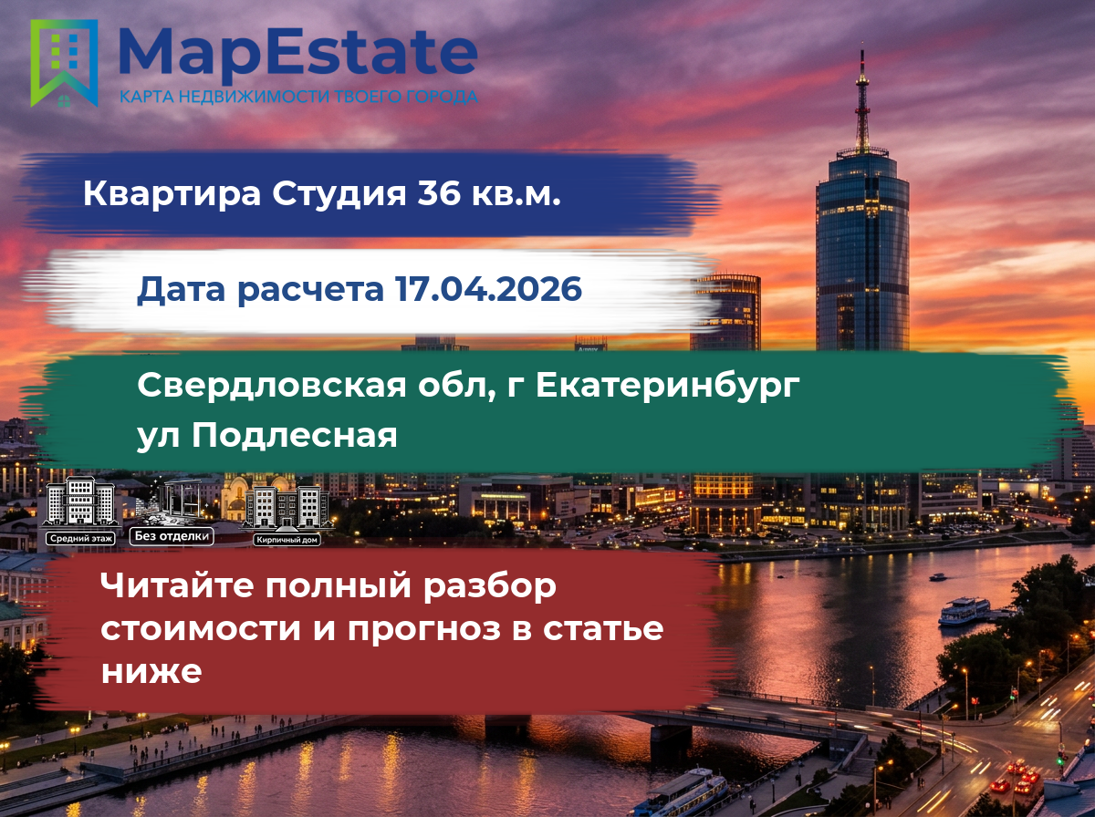 Сколько стоит квартира 36 м² в свердловская обл, г екатеринбург, ул подлесная?