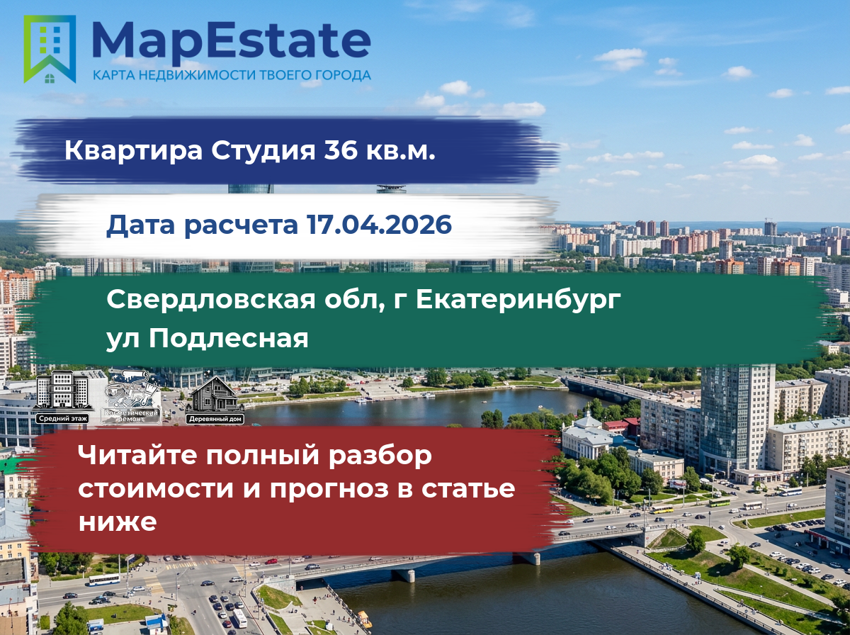 Сколько стоит квартира 36 м² в свердловская обл, г екатеринбург, ул подлесная?