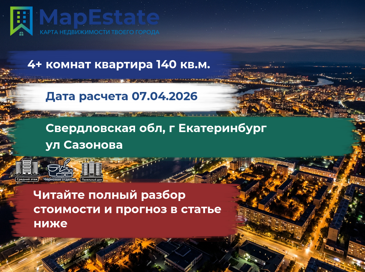 Сколько стоит квартира 140 м² в свердловская обл, г екатеринбург, ул сазонова?