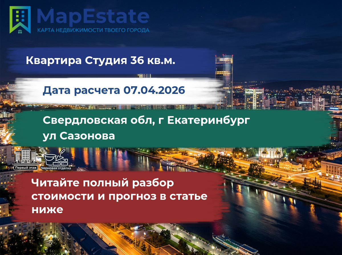 Сколько стоит квартира 36 м² в свердловская обл, г екатеринбург, ул сазонова?