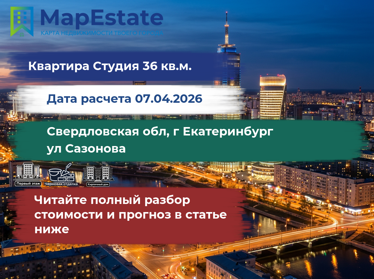 Сколько стоит квартира 36 м² в свердловская обл, г екатеринбург, ул сазонова?