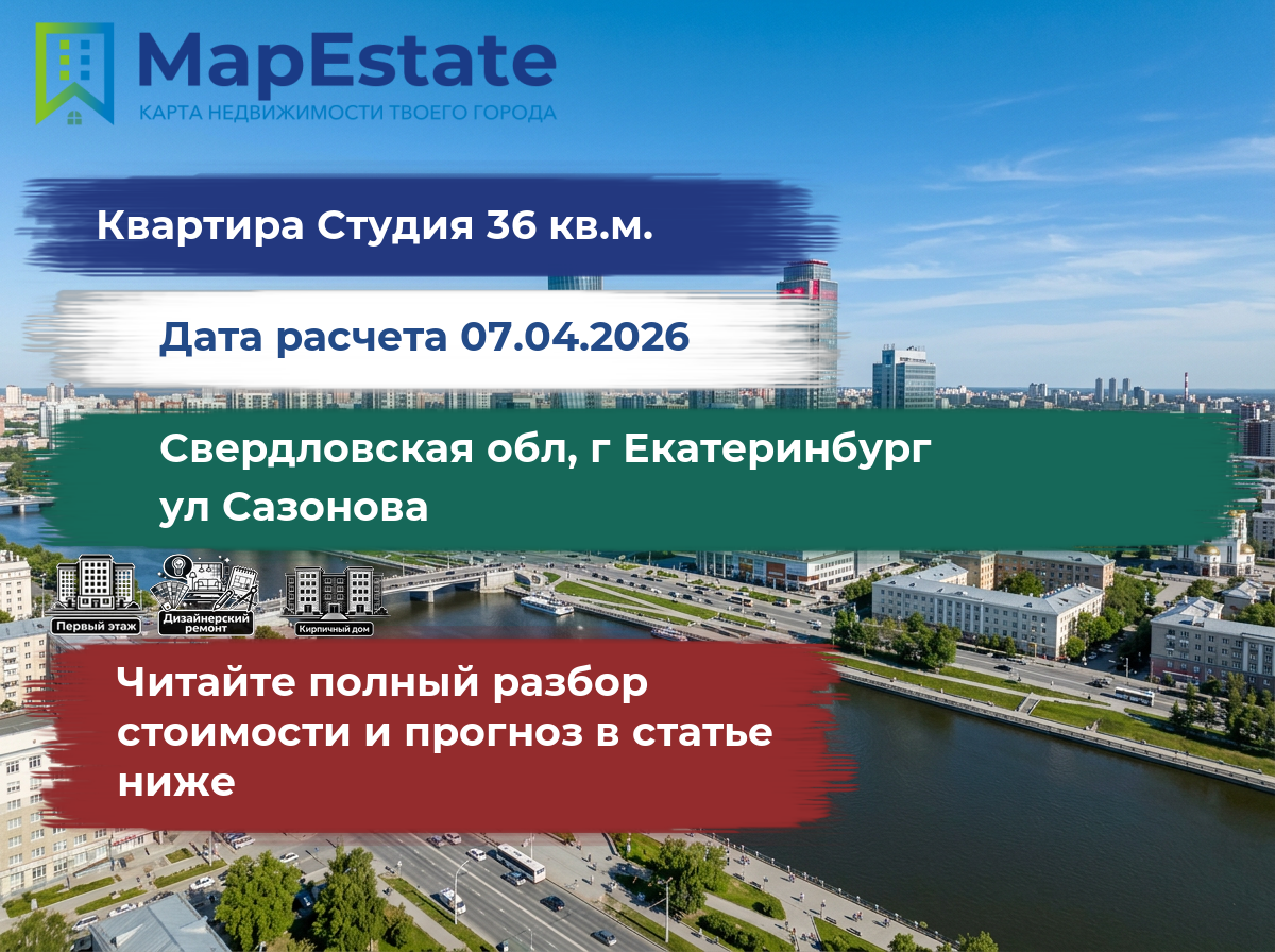 Сколько стоит квартира 36 м² в свердловская обл, г екатеринбург, ул сазонова?