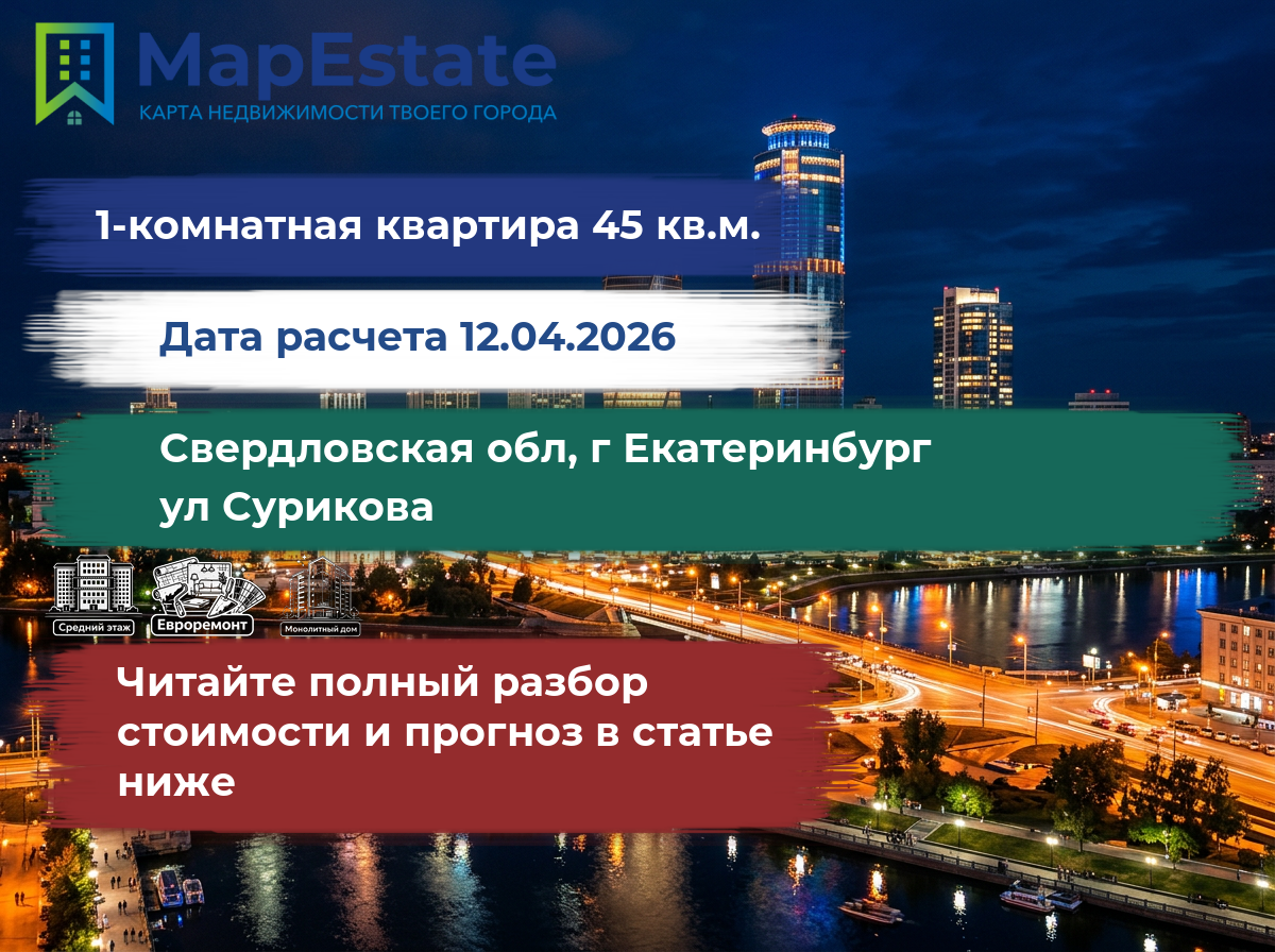 Сколько стоит квартира 45 м² в свердловская обл, г екатеринбург, ул сурикова?