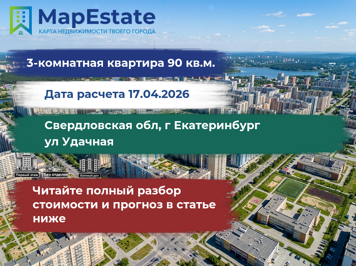 Сколько стоит квартира 90 м² в свердловская обл, г екатеринбург, ул удачная?