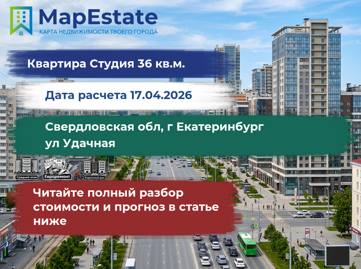 Сколько стоит квартира 36 м² в свердловская обл, г екатеринбург, ул удачная?
