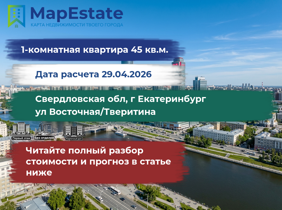 Сколько стоит квартира 45 м² в свердловская обл, г екатеринбург, ул восточная/тверитина?