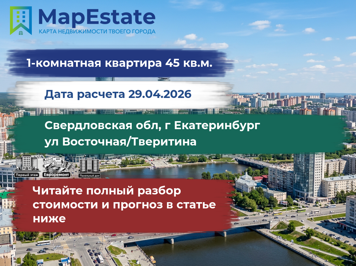 Сколько стоит квартира 45 м² в свердловская обл, г екатеринбург, ул восточная/тверитина?