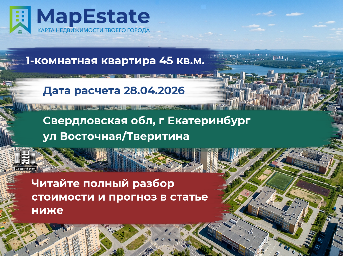 Сколько стоит квартира 45 м² в свердловская обл, г екатеринбург, ул восточная/тверитина?