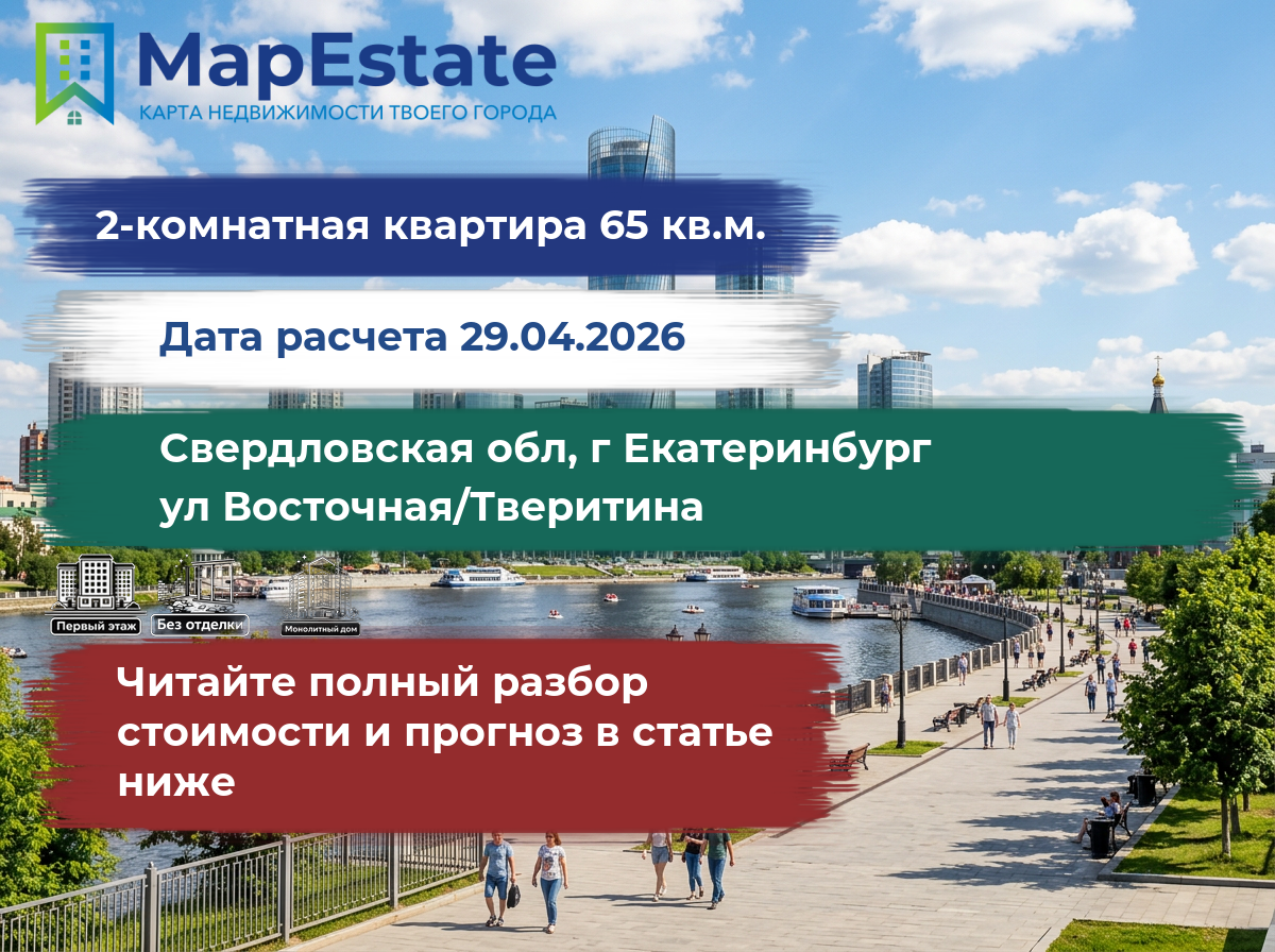 Сколько стоит квартира 65 м² в свердловская обл, г екатеринбург, ул восточная/тверитина?