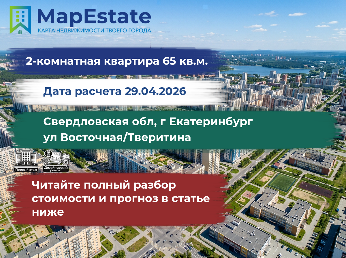 Сколько стоит квартира 65 м² в свердловская обл, г екатеринбург, ул восточная/тверитина?