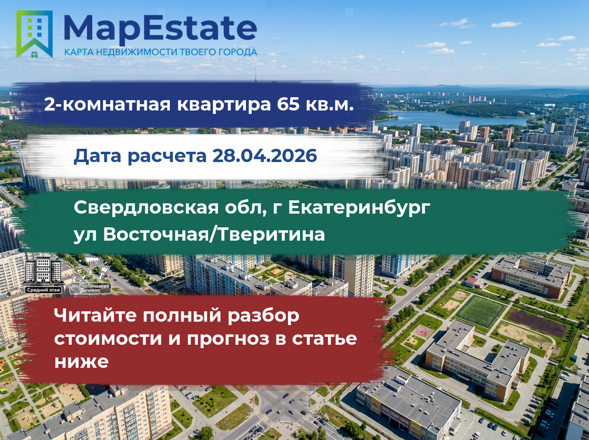 Сколько стоит квартира 65 м² в свердловская обл, г екатеринбург, ул восточная/тверитина?