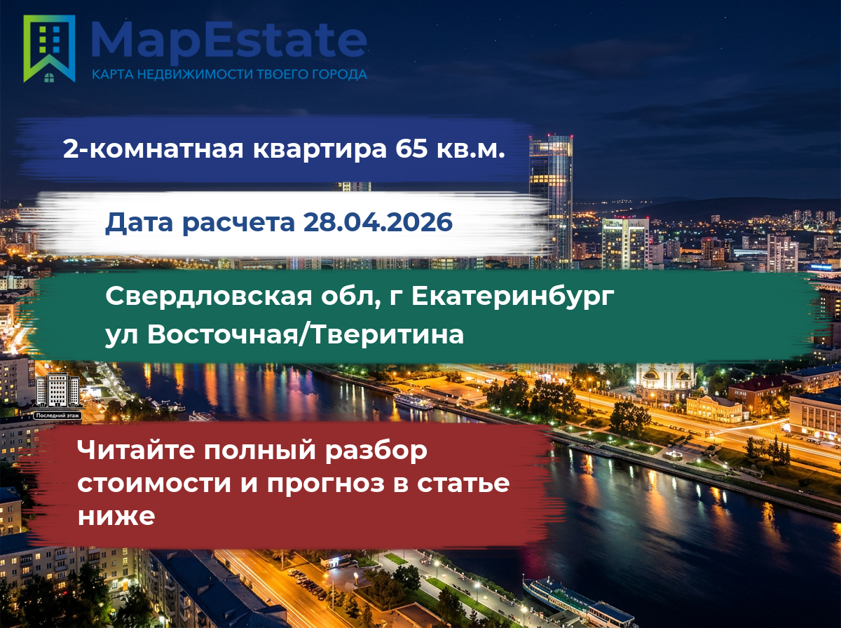 Сколько стоит квартира 65 м² в свердловская обл, г екатеринбург, ул восточная/тверитина?