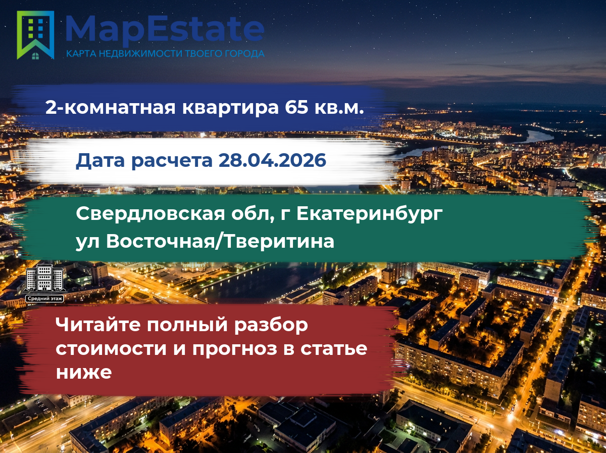 Сколько стоит квартира 65 м² в свердловская обл, г екатеринбург, ул восточная/тверитина?