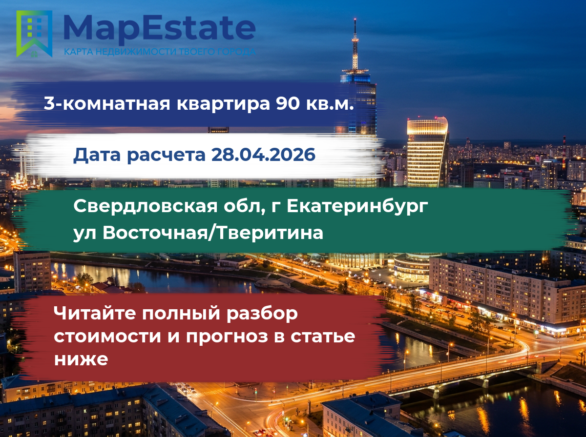 Сколько стоит квартира 90 м² в свердловская обл, г екатеринбург, ул восточная/тверитина?
