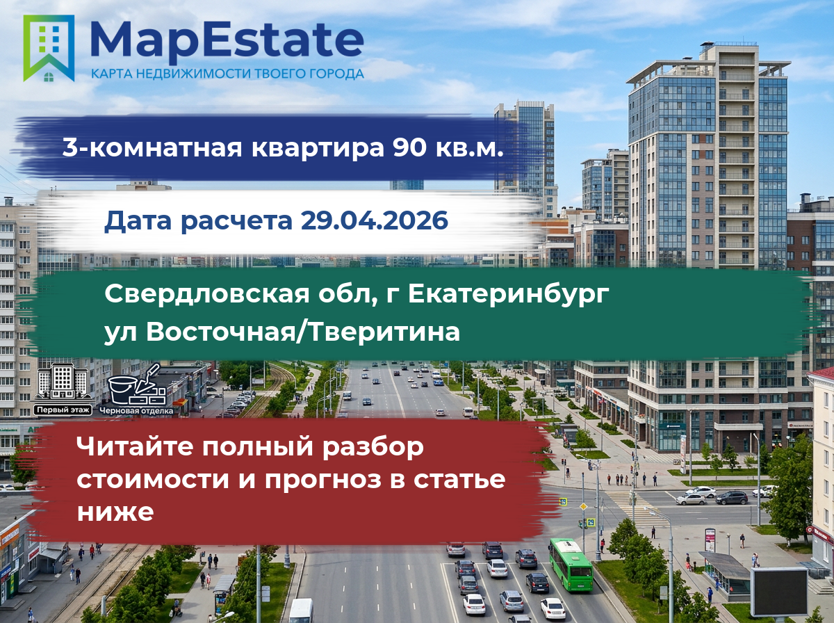 Сколько стоит квартира 90 м² в свердловская обл, г екатеринбург, ул восточная/тверитина?