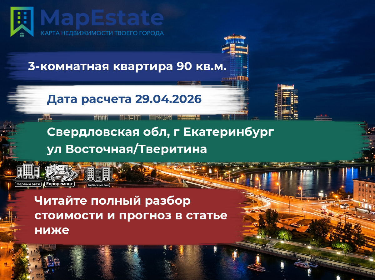 Сколько стоит квартира 90 м² в свердловская обл, г екатеринбург, ул восточная/тверитина?