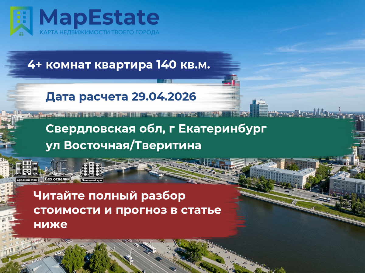 Сколько стоит квартира 140 м² в свердловская обл, г екатеринбург, ул восточная/тверитина?