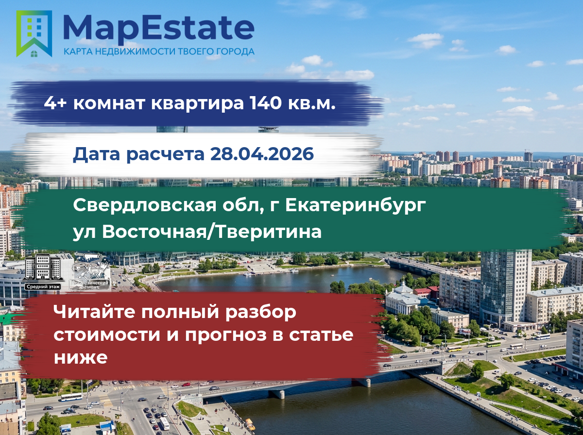 Сколько стоит квартира 140 м² в свердловская обл, г екатеринбург, ул восточная/тверитина?