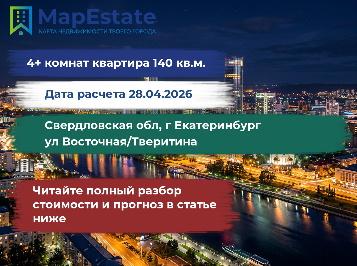 Сколько стоит квартира 140 м² в свердловская обл, г екатеринбург, ул восточная/тверитина?