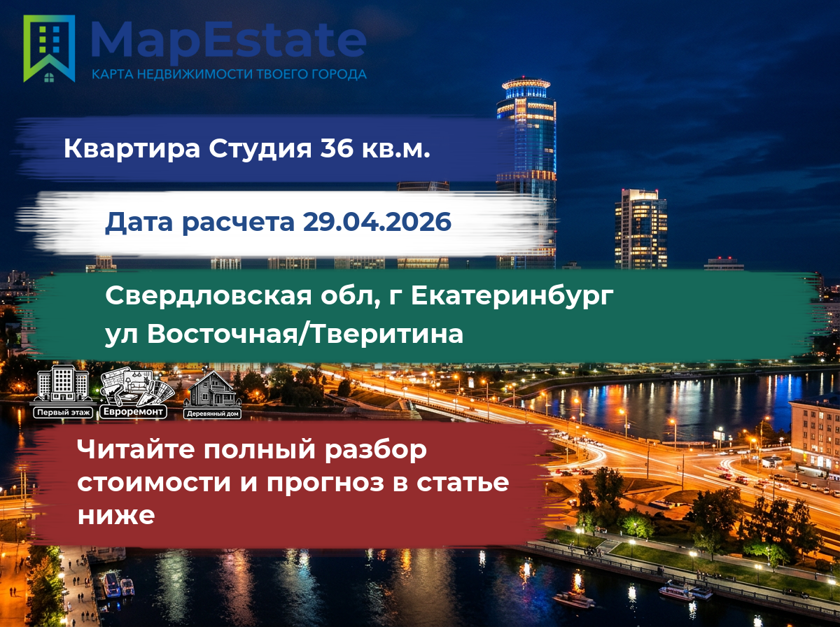 Сколько стоит квартира 36 м² в свердловская обл, г екатеринбург, ул восточная/тверитина?