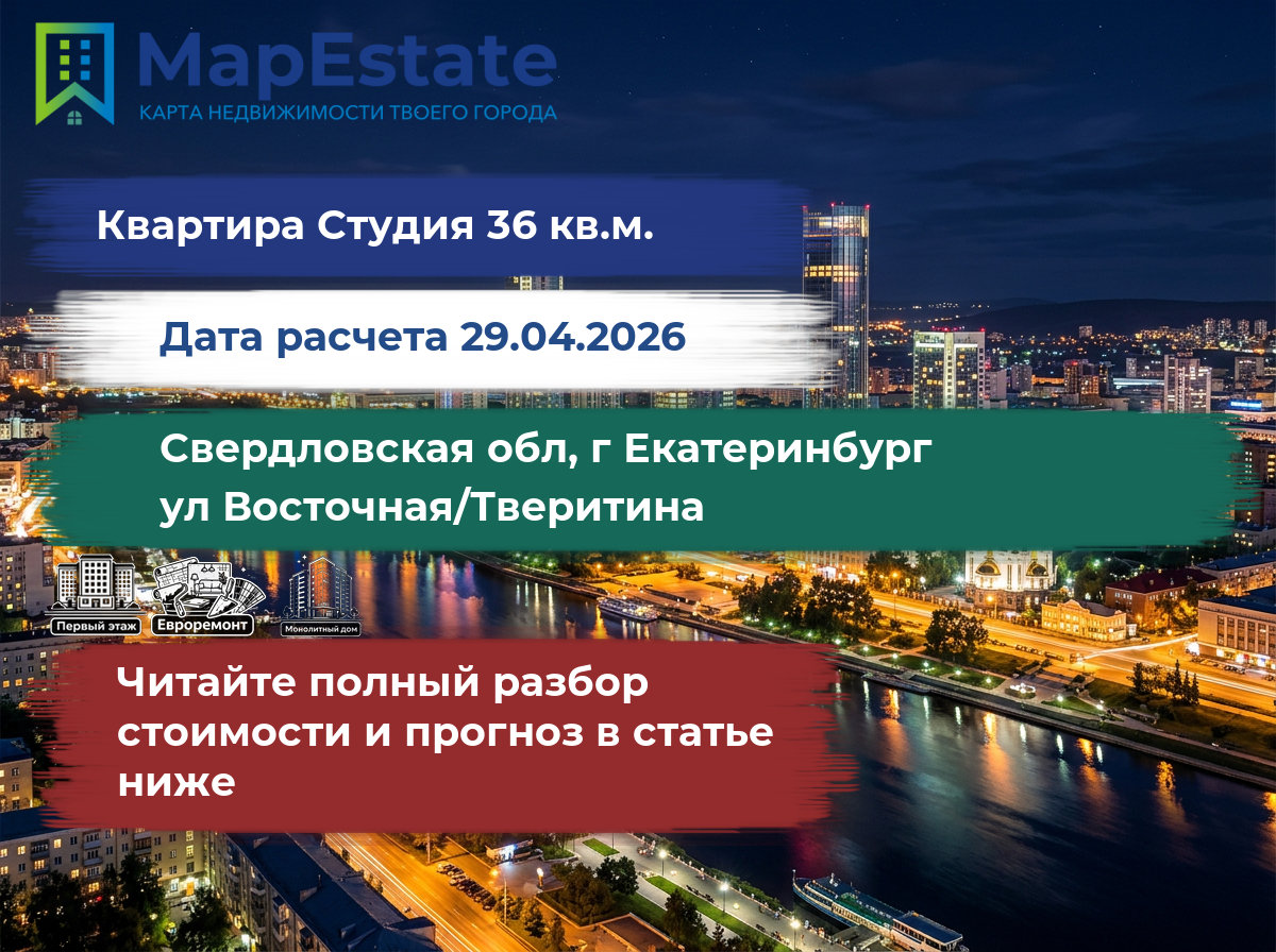 Сколько стоит квартира 36 м² в свердловская обл, г екатеринбург, ул восточная/тверитина?