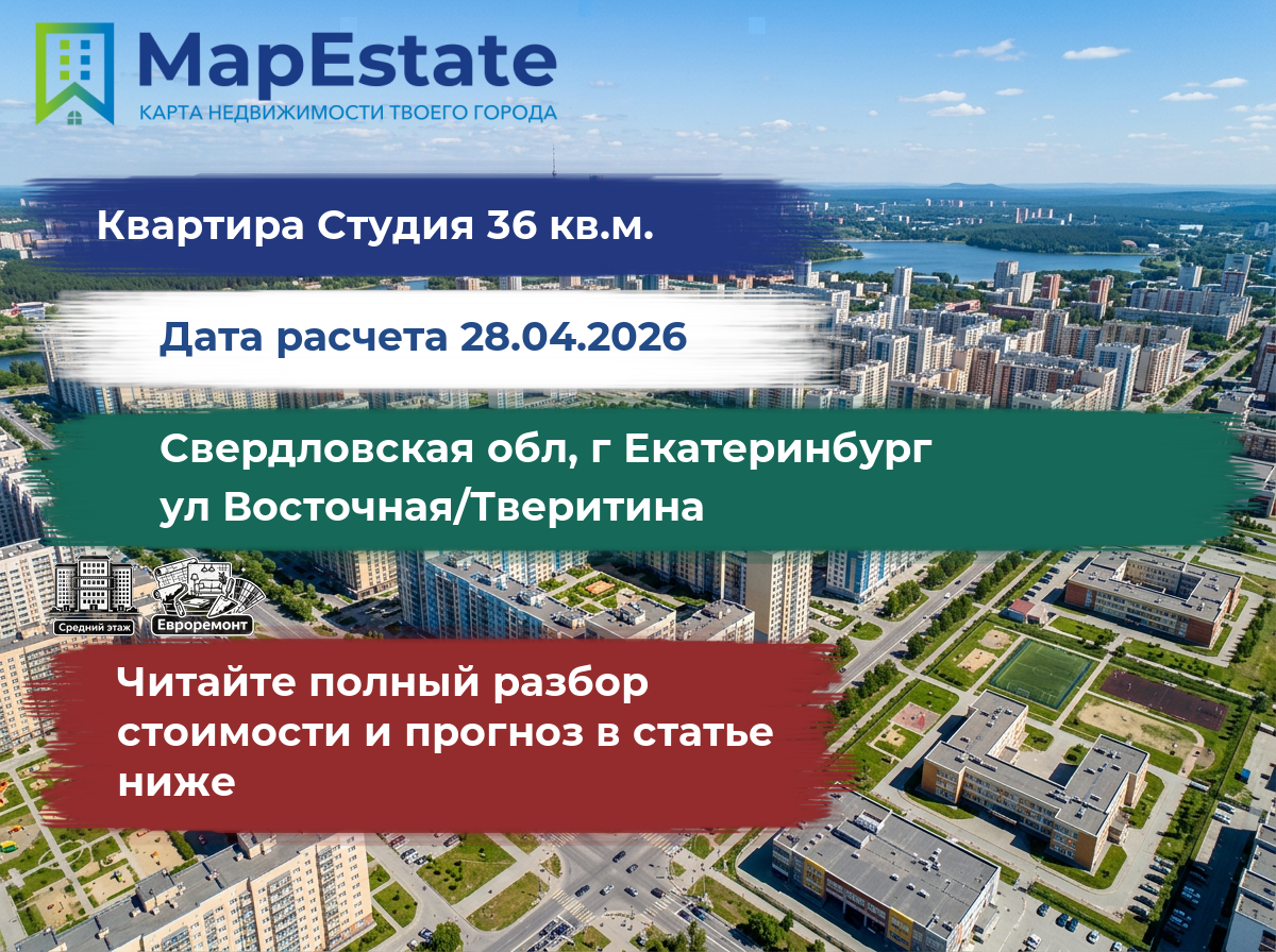 Сколько стоит квартира 36 м² в свердловская обл, г екатеринбург, ул восточная/тверитина?
