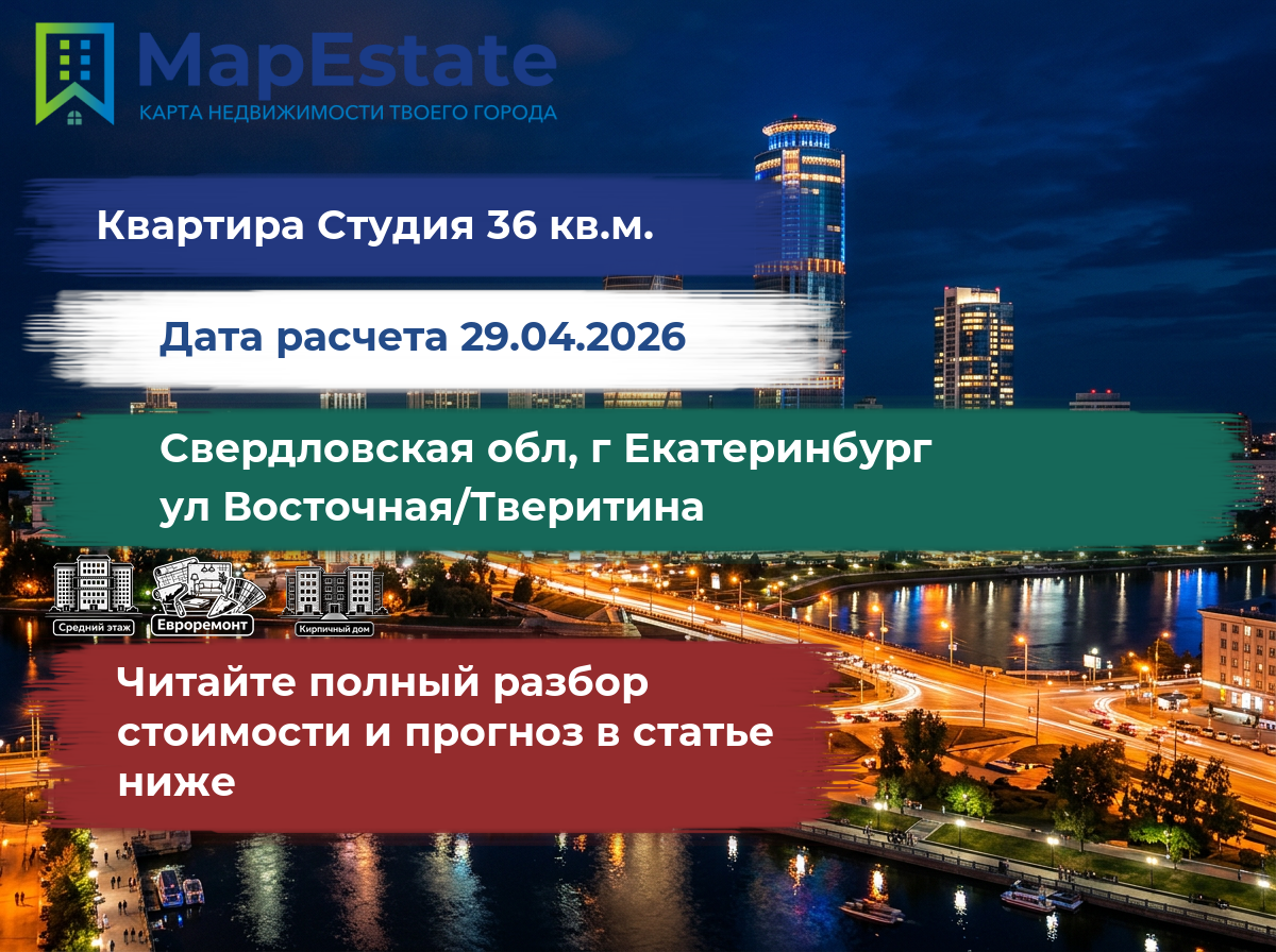 Сколько стоит квартира 36 м² в свердловская обл, г екатеринбург, ул восточная/тверитина?