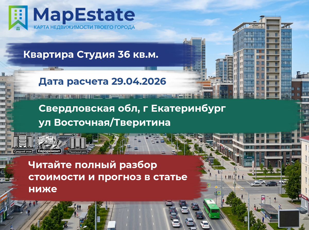 Сколько стоит квартира 36 м² в свердловская обл, г екатеринбург, ул восточная/тверитина?