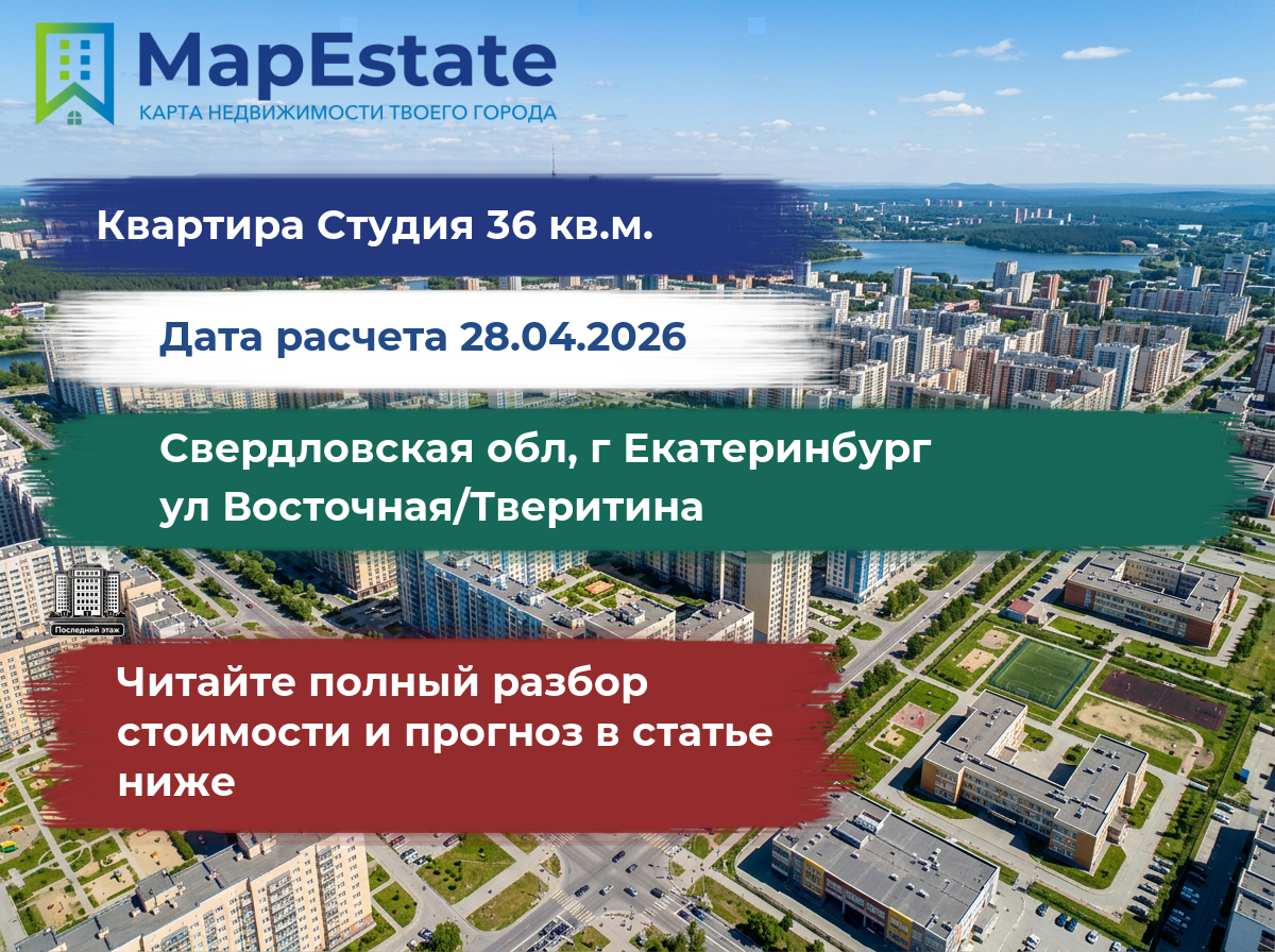 Сколько стоит квартира 36 м² в свердловская обл, г екатеринбург, ул восточная/тверитина?