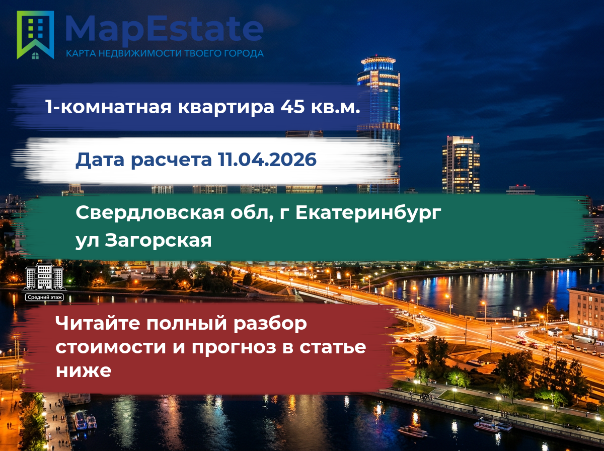 Сколько стоит квартира 45 м² в свердловская обл, г екатеринбург, ул загорская?