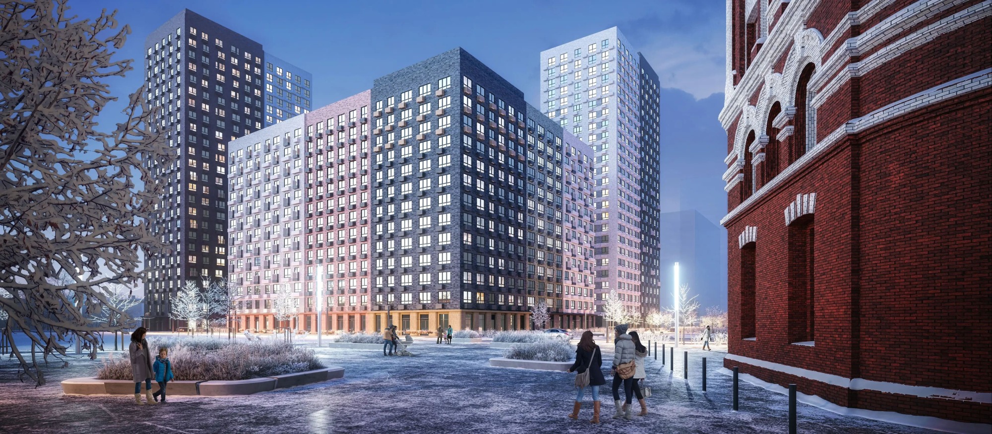 На территории квартала появится школа, два детских сада, поликлиника и современные многоуровневые и подземный паркинги. Один из центральных элементов проекта — просторный пешеходный бульвар и благоустроенная набережная, которые идеально подходят для прогулок и отдыха. На первых этажах домов откроются магазины, кафе и другие полезные сервисы. Центром притяжения станет уникальное общественное пространство, которое будет создано вокруг отреставрированной водонапорной башни XIX века.
