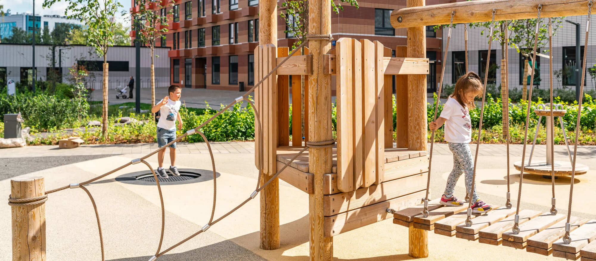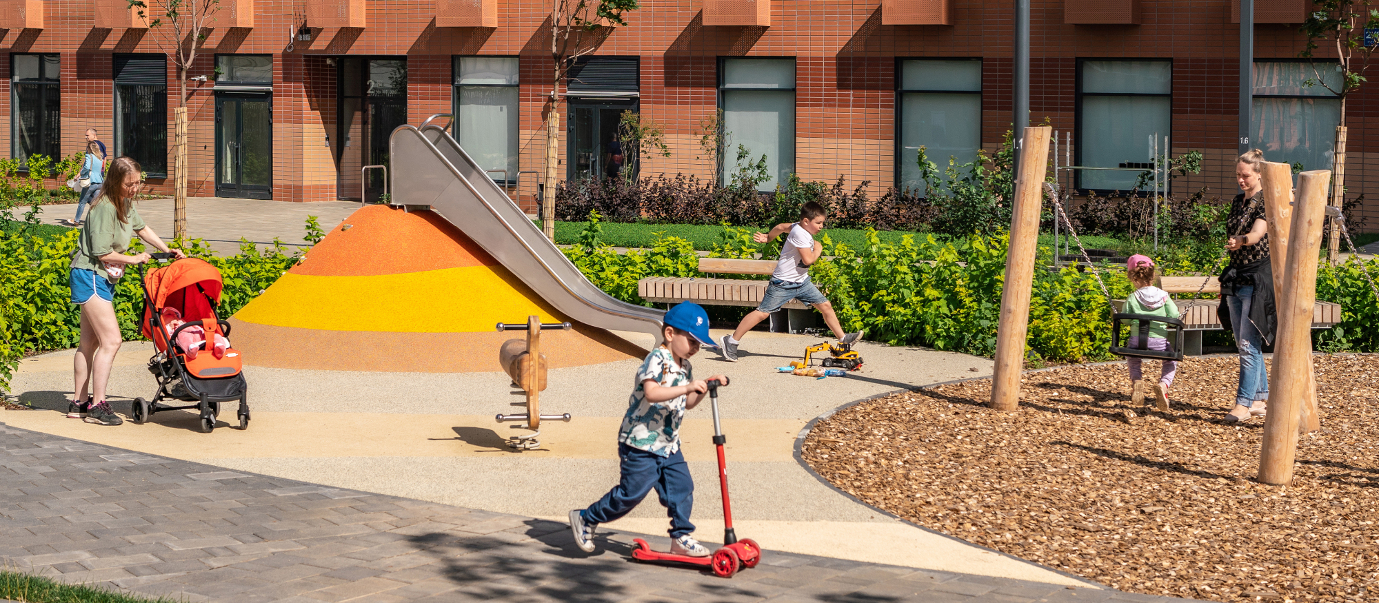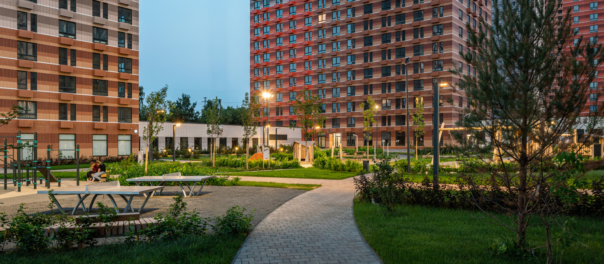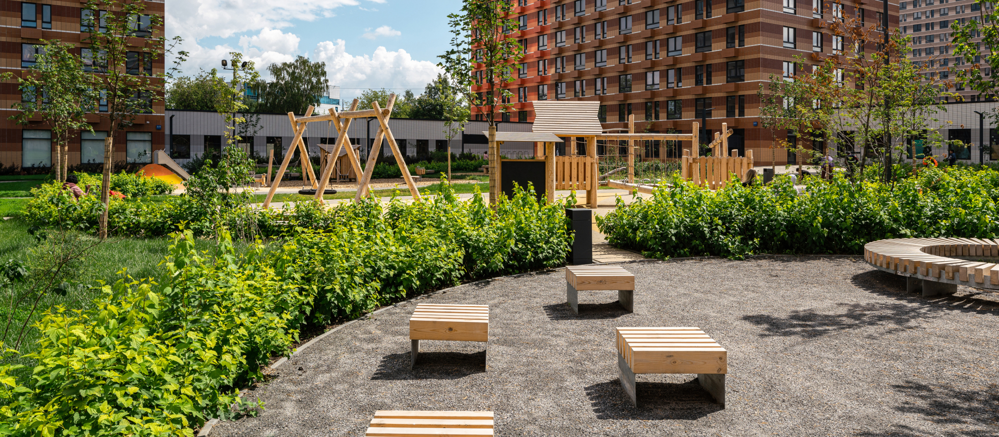 На территории проекта уже работает собственный детский сад и строится школа. Во дворах — зелёный парк с местами для отдыха, детскими и спортивными площадками. Для тихого и активного отдыха появится МультиХаб «Яблони» с красивым садом, большой детской игровой зоной и спортивным бульваром. На первых этажах домов — магазины, кафе и полезные сервисы. А для владельцев автомобилей предусмотрен подземный паркинг.