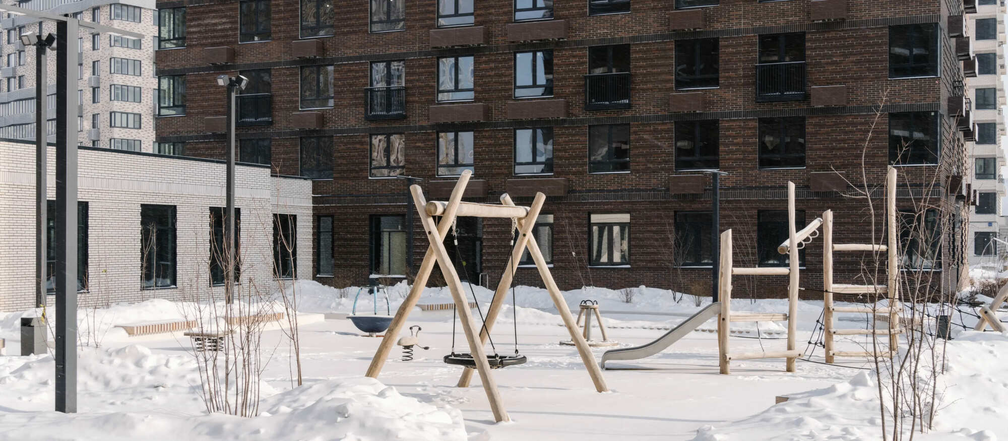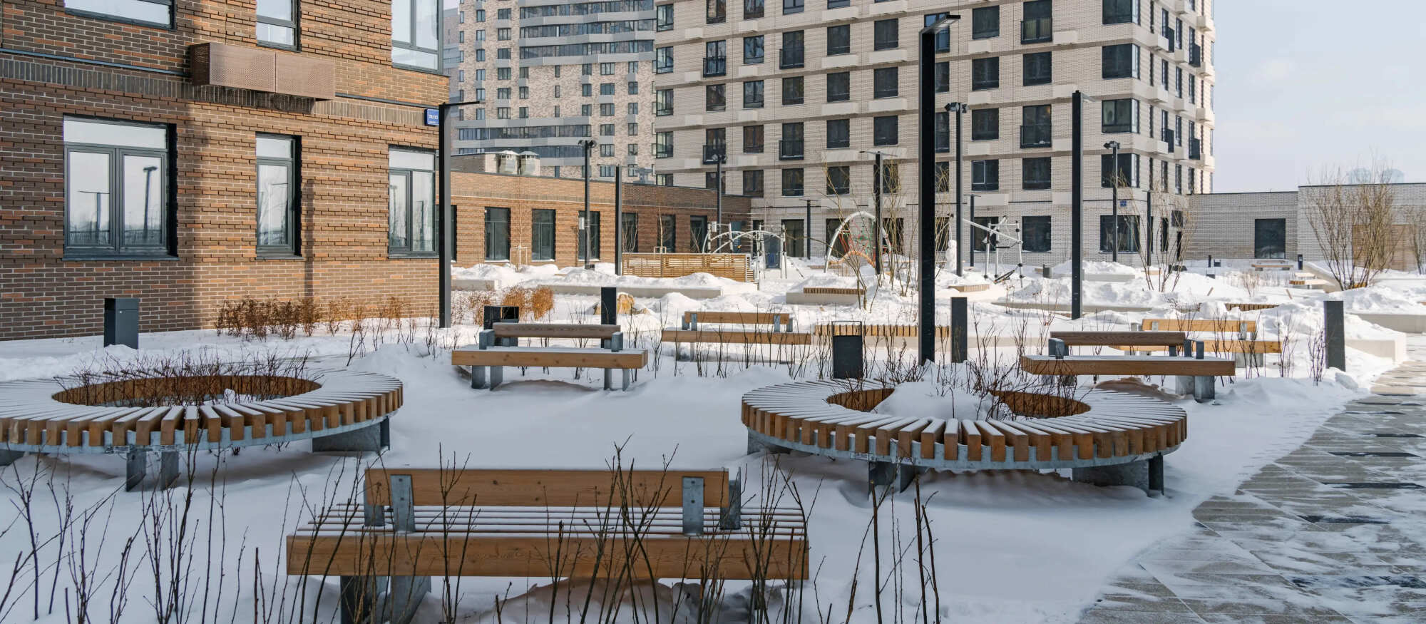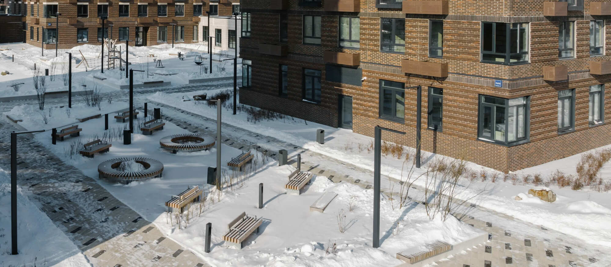 Набережную вдоль реки "ПИК" благоустроит. На берегу устроят прогулочную зону с детскими игровыми и спортивными площадками, местами для отдыха. Согласно концепции "ПИК-Стандарт", дворы будут закрытыми для машин, подъезды — со сквозными входами. На территории высаживают деревья и кустарники.
