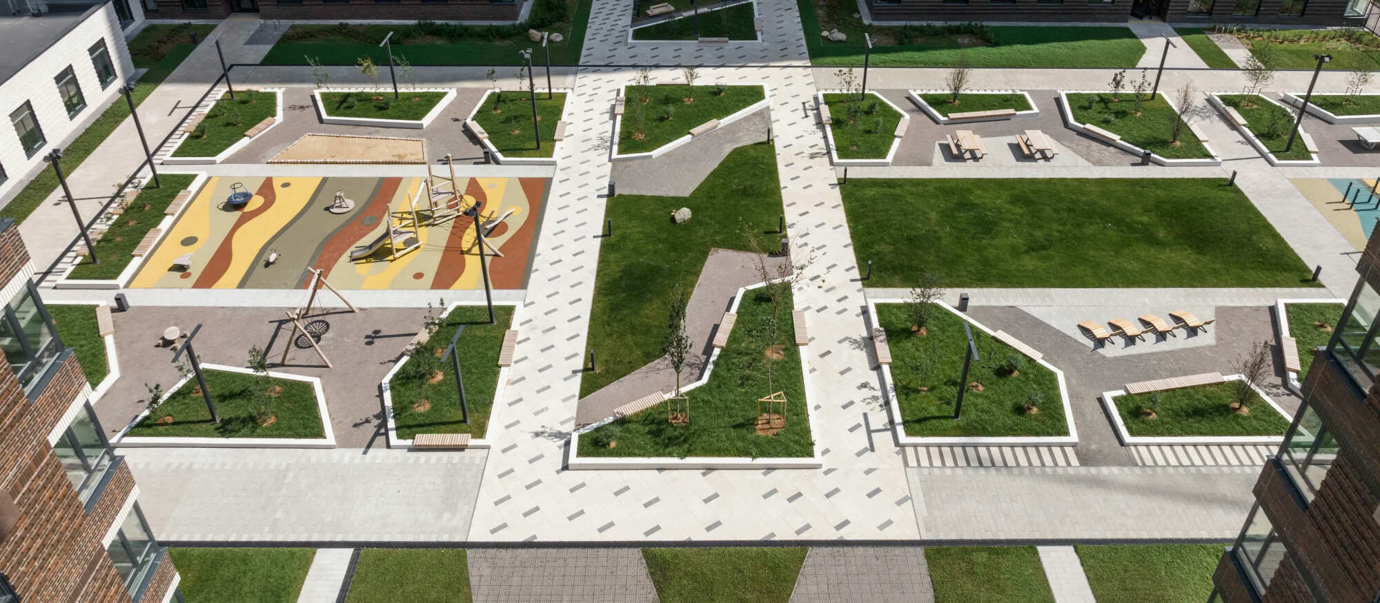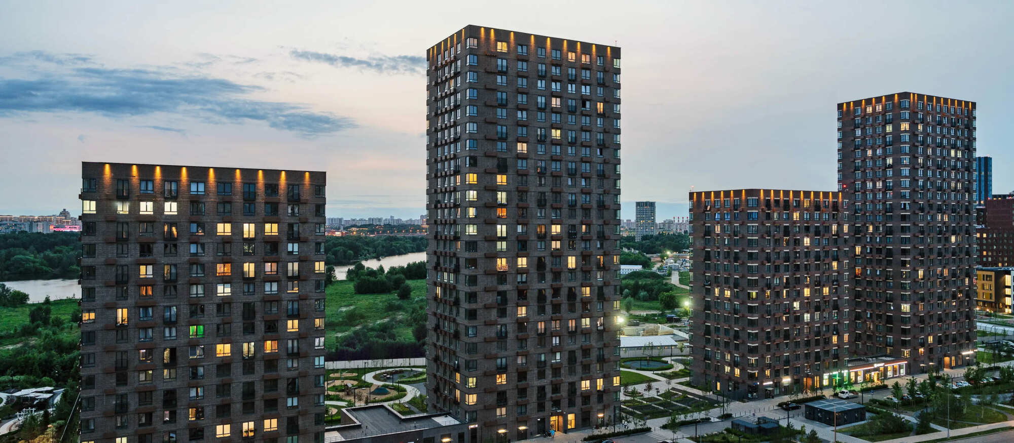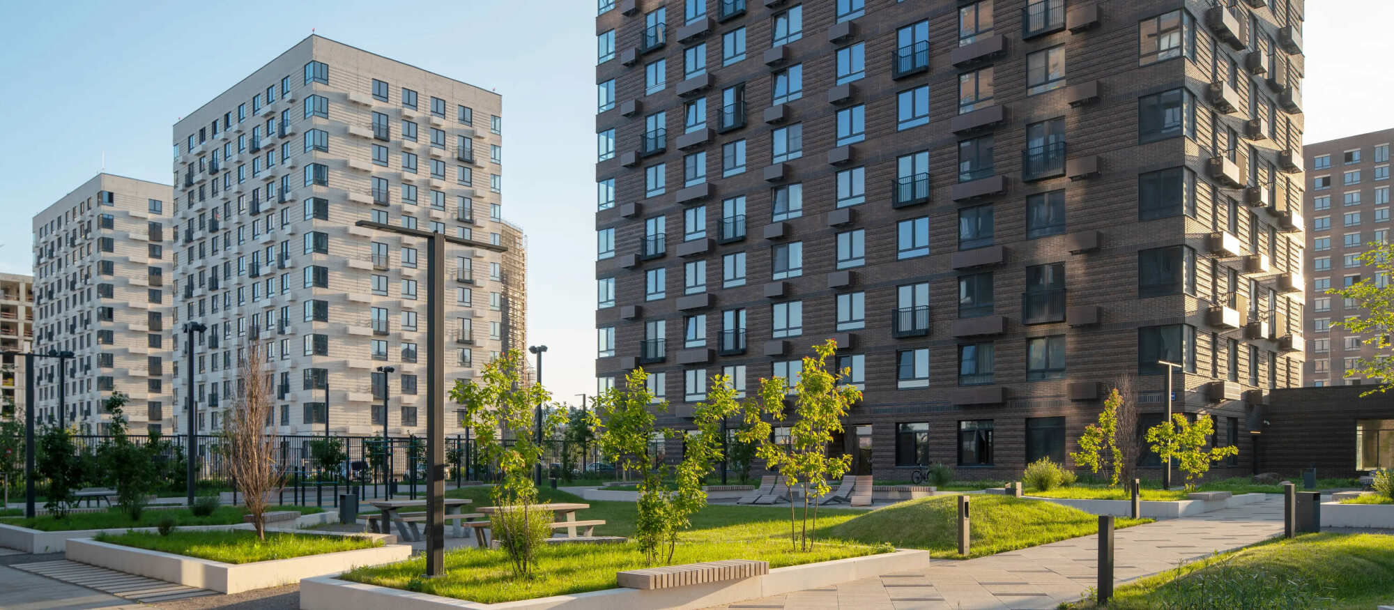 На территории проекта появится две школы на 850 мест каждая и два детских сада на 150 и 300 мест. Во дворах проекта — уютные парки с местами для отдыха, детскими и спортивными площадками. На первых этажах откроются магазины, кафе и полезные сервисы. А для владельцев автомобилей появится подземный паркинг.
