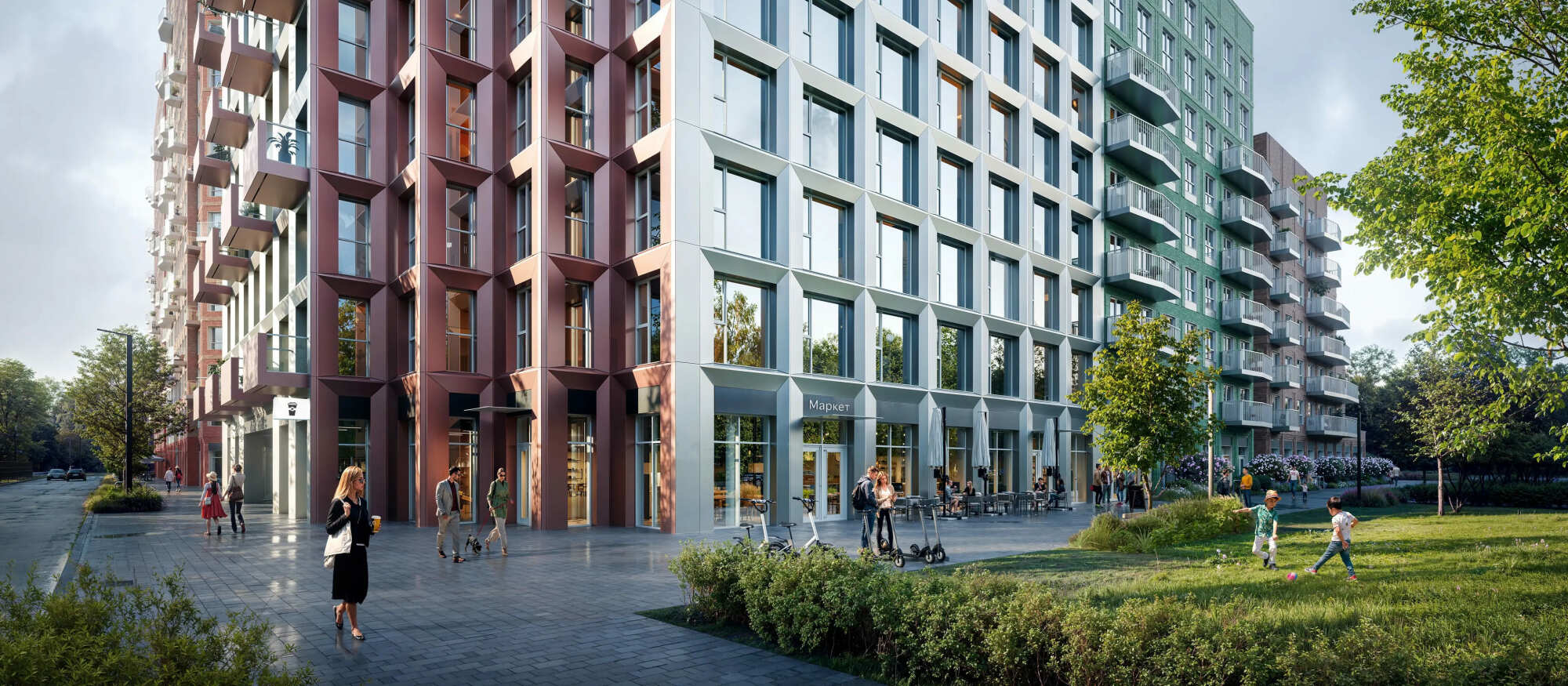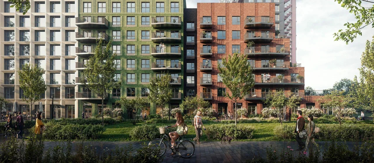 На территории проекта появится детский сад для 300 малышей и образовательный центр с детским садом на 125 мест и школой для 950 учеников. В уютных дворах-парках будут места для отдыха, игровые и спортивные площадки. На первых этажах домов откроются магазины, кафе и другие сервисы. А для владельцев автомобилей предусмотрен двухуровневый подземный паркинг с местами для электрокаров.
