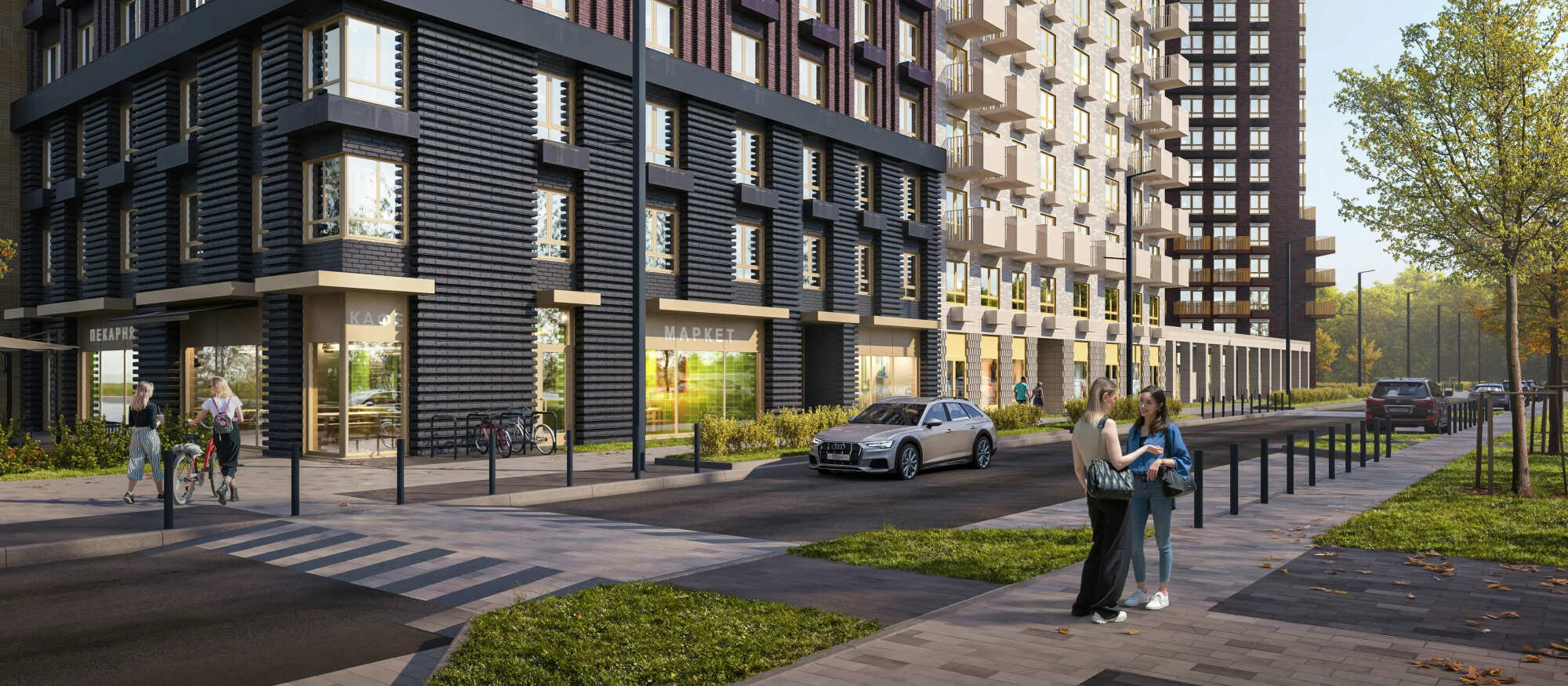 Для самых маленьких жителей в квартале появится собственный детский сад на 200 мест, а ещё Local Play — большое игровое пространство для детей, где будет интересно и малышам, и подросткам. В зелёных дворах-парках мы оборудуем современные детские площадки и места для отдыха. На первых этажах домов откроются магазины, кафе и полезные сервисы. Для владельцев автомобилей предусмотрен подземный паркинг.