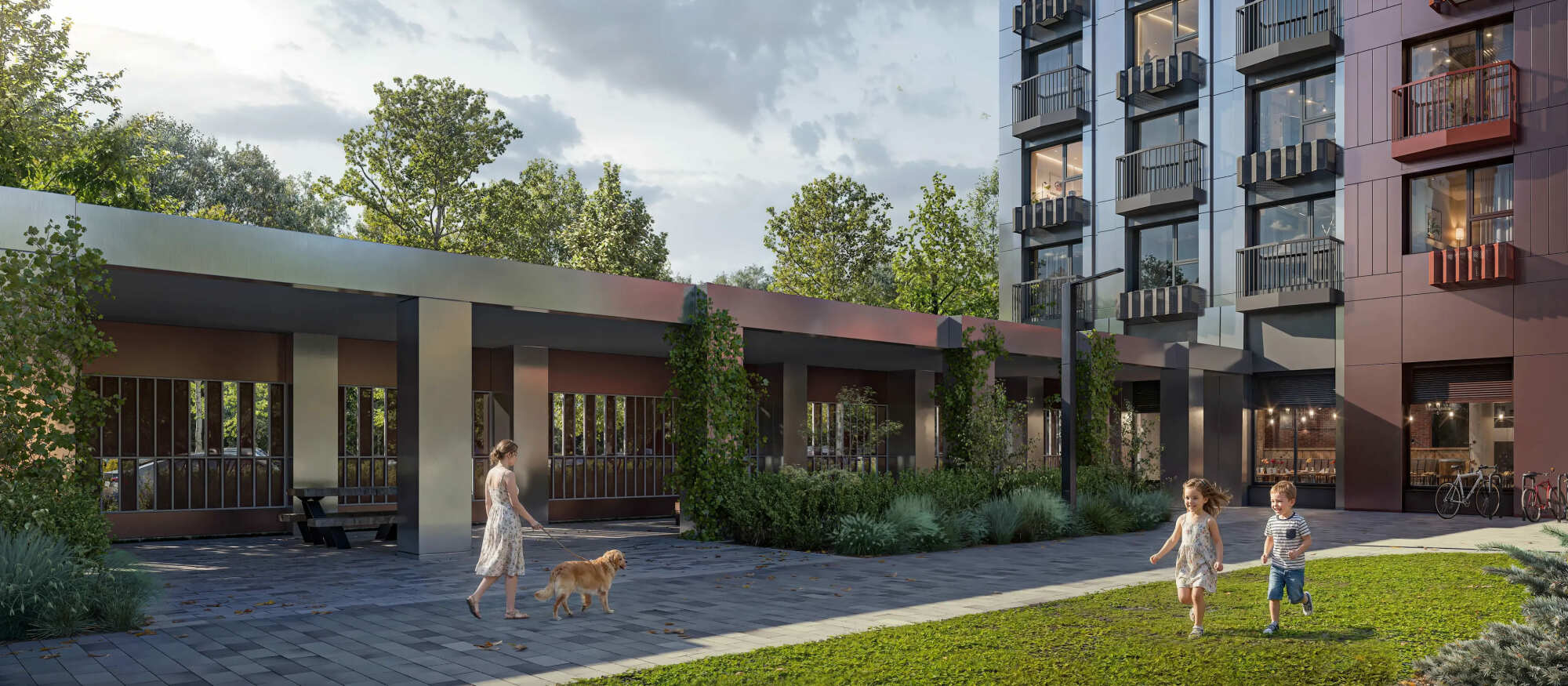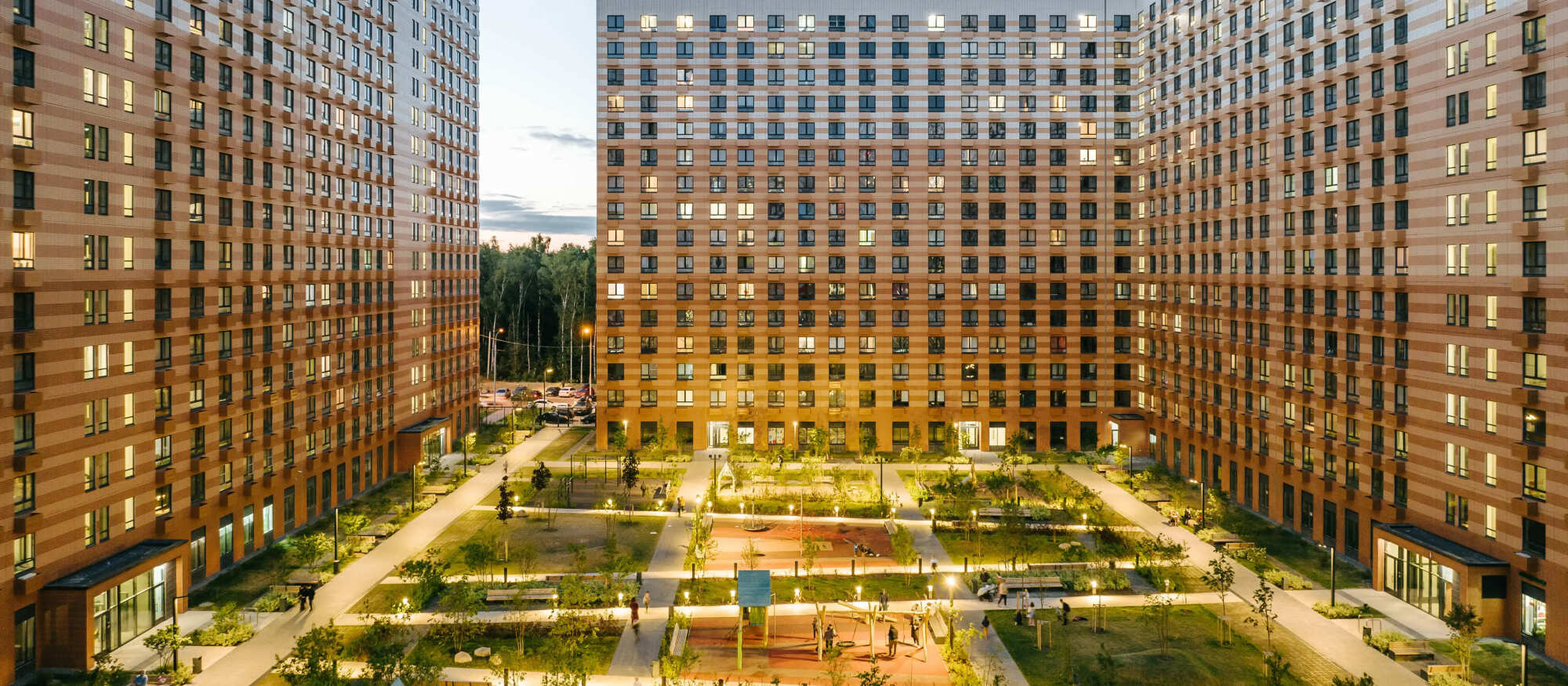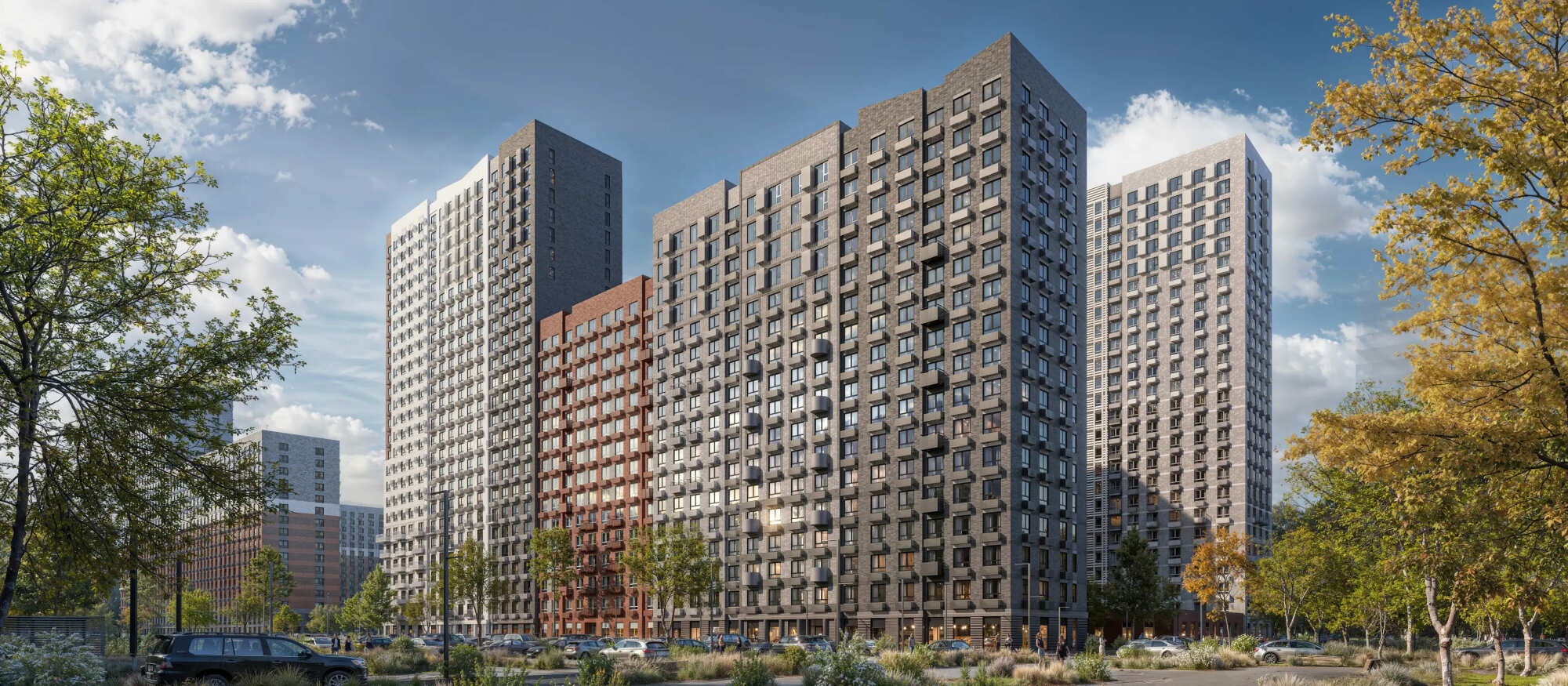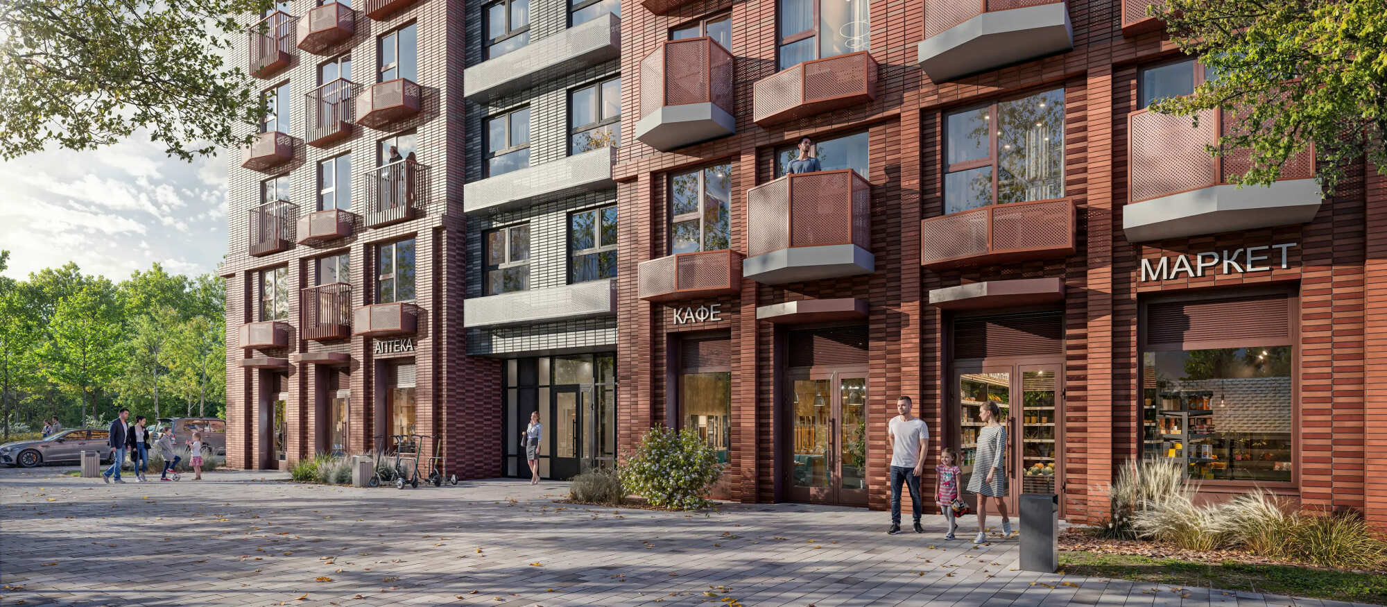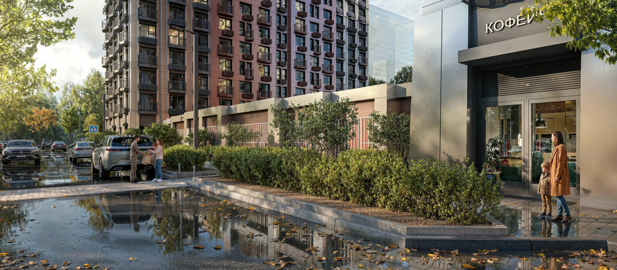 Во дворах — зелёные парки с местами отдыха, детскими и спортивными площадками. На первых этажах домов работают магазины, кафе и полезные сервисы. А для владельцев автомобилей предусмотрены многоуровневый и подземный паркинги.