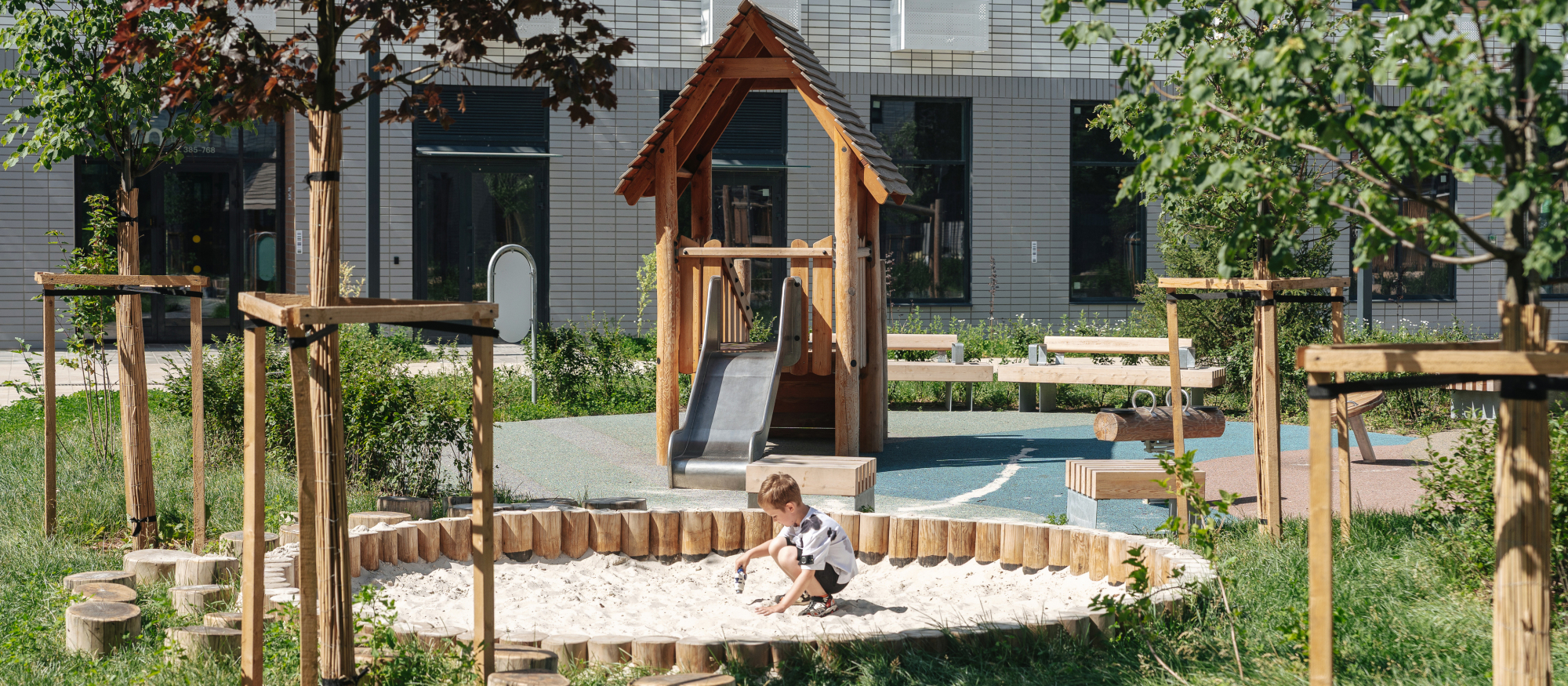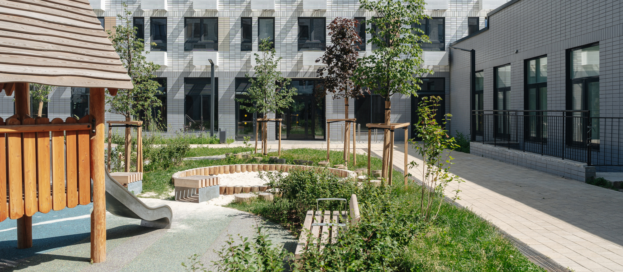 На территории квартала появятся три собственных детских сада, поликлиника, паркинги для жителей и гостей квартала. Во дворах — зелёные парки с местами для отдыха, спортивными и детскими площадками. На первых этажах откроются кафе, магазины и другие сервисы для комфортной жизни.