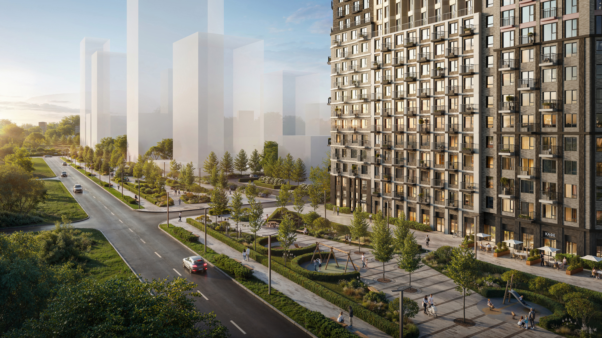 Проект частично реализован: дома первой очереди уже сданы, открыты магазины и кафе. Скоро у жителей проекта появится своя школа и детский сад.