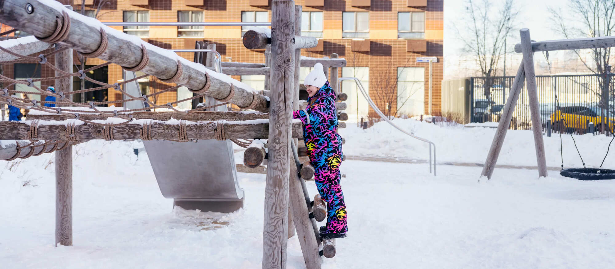 Детям любых возрастов понравится исследовать уникальное игровое пространство. Ребятам предстоит пройти полосу препятствий: проползти по тоннелю в полусфере, затем взобраться на стальной купол, а после этого — вскарабкаться по канатной сетке длиной в 15 метров, ведущей прямиком к зиплайну.