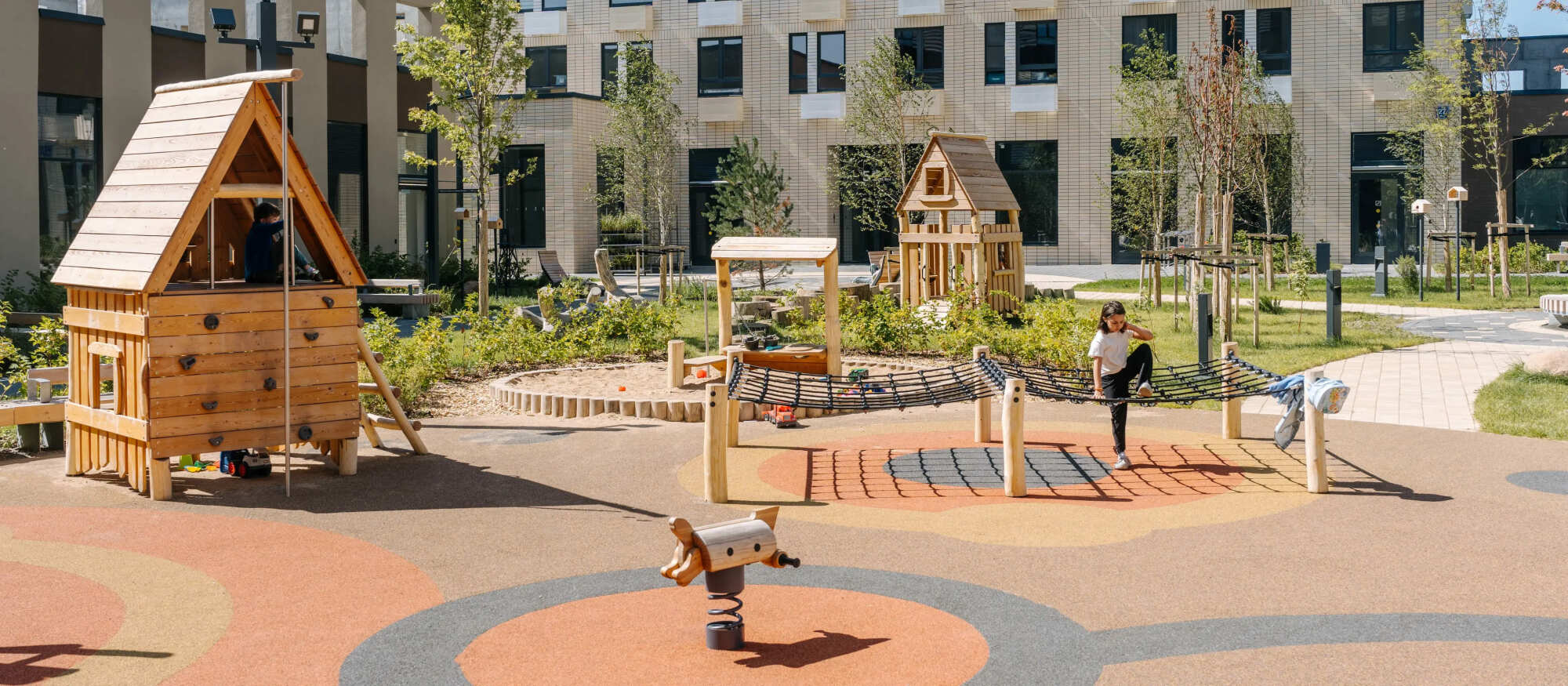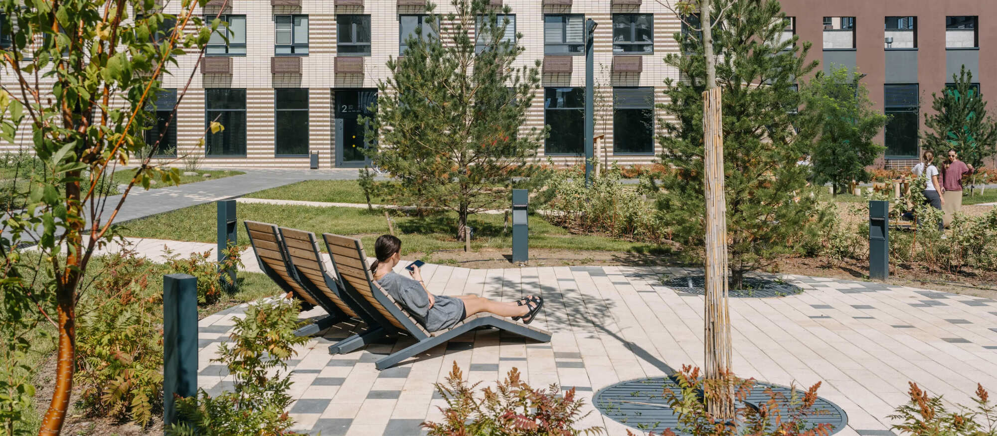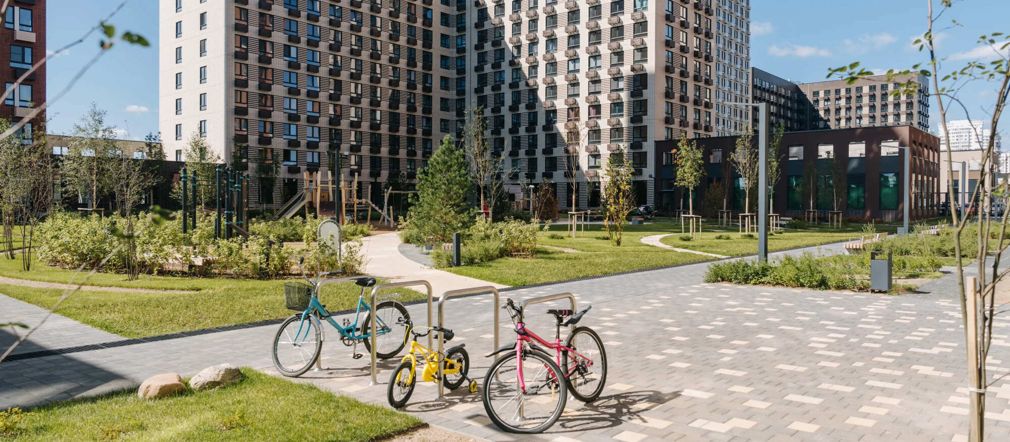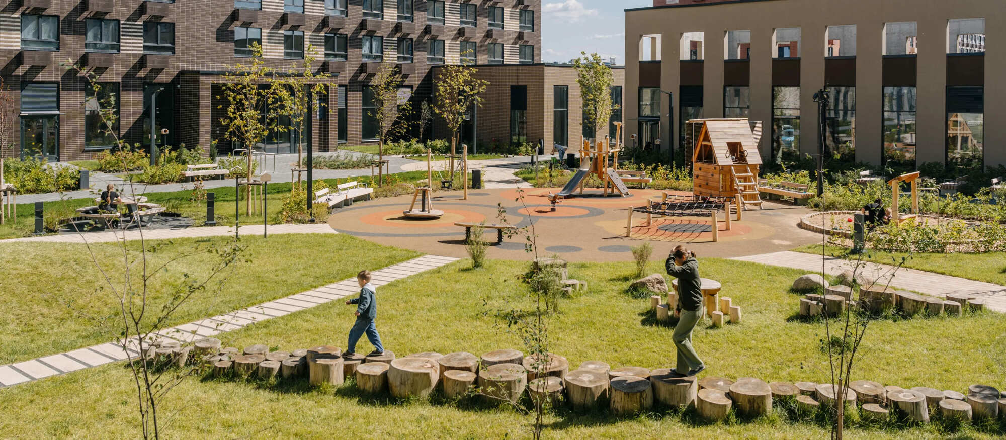 На территории квартала появятся две школы, два детских сада — один уже открыт — и паркинг. На первых этажах домов работают магазины и полезные сервисы. В уютных дворах-парках появятся детские и спортивные площадки, кофейни и зоны отдыха. А через квартал протянется пешеходный бульвар для неспешных прогулок у дома.