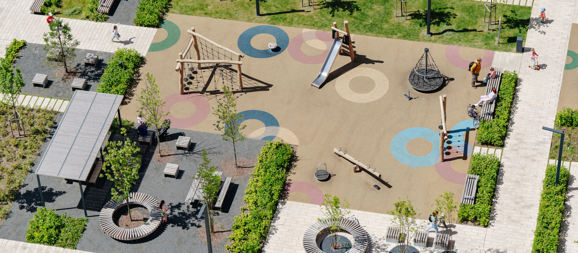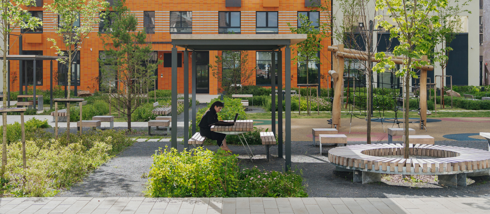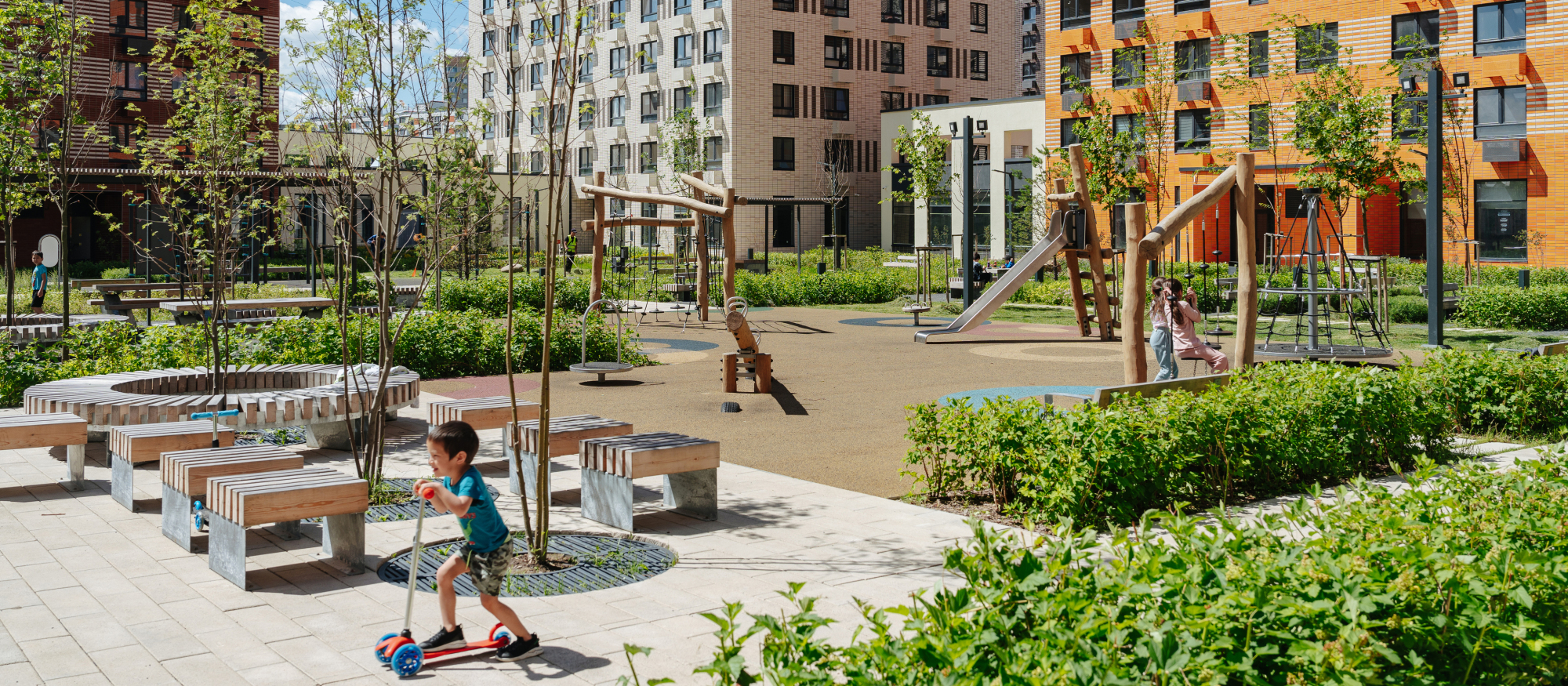 В квартале будет школа с лабораторией по системе Физтеха и два детских сада — один из них уже открыт. В каждом дворе — детские и спортивные площадки с безопасным резиновым покрытием. Через весь район протянется пешеходный бульвар для неспешных прогулок у дома, а на первых этажах домов открыты магазины и полезные сервисы.