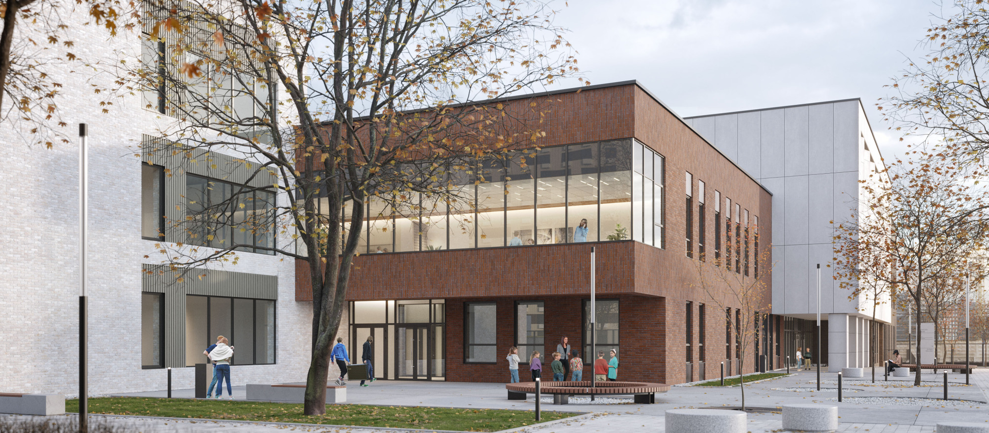 На территории проекта появятся детский сад и школа. На первых этажах откроются магазины, кафе, салоны красоты и другие сервисы. А для владельцев автомобилей предусмотрены многоуровневый и подземные паркинги.