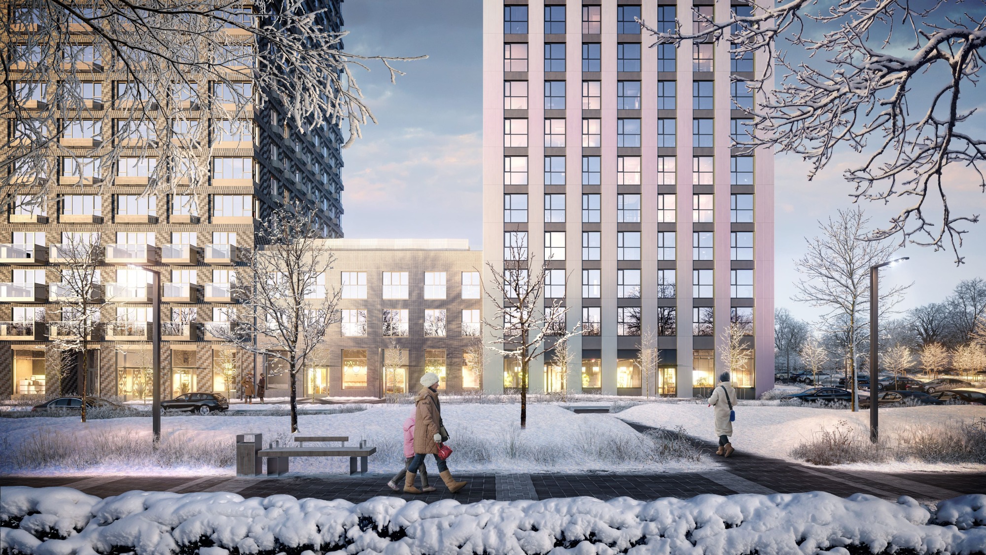 Проект состоит из зданий разной высоты и разной по характеру архитектуры. Узнаваемой доминантой квартала станет башня из стекла и металла, напоминающая водопад.