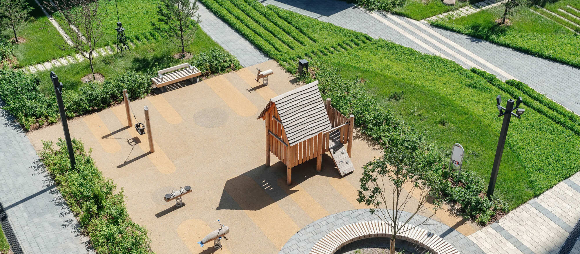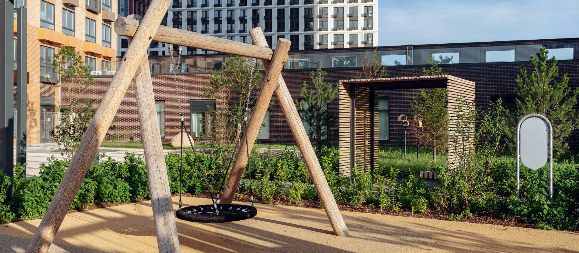 Небольшой и уютный проект включает четыре корпуса переменной высоты. Благородные фасады в природных оттенках — охре, терракотовом и песочном — надолго сохранят стильный и современный облик.