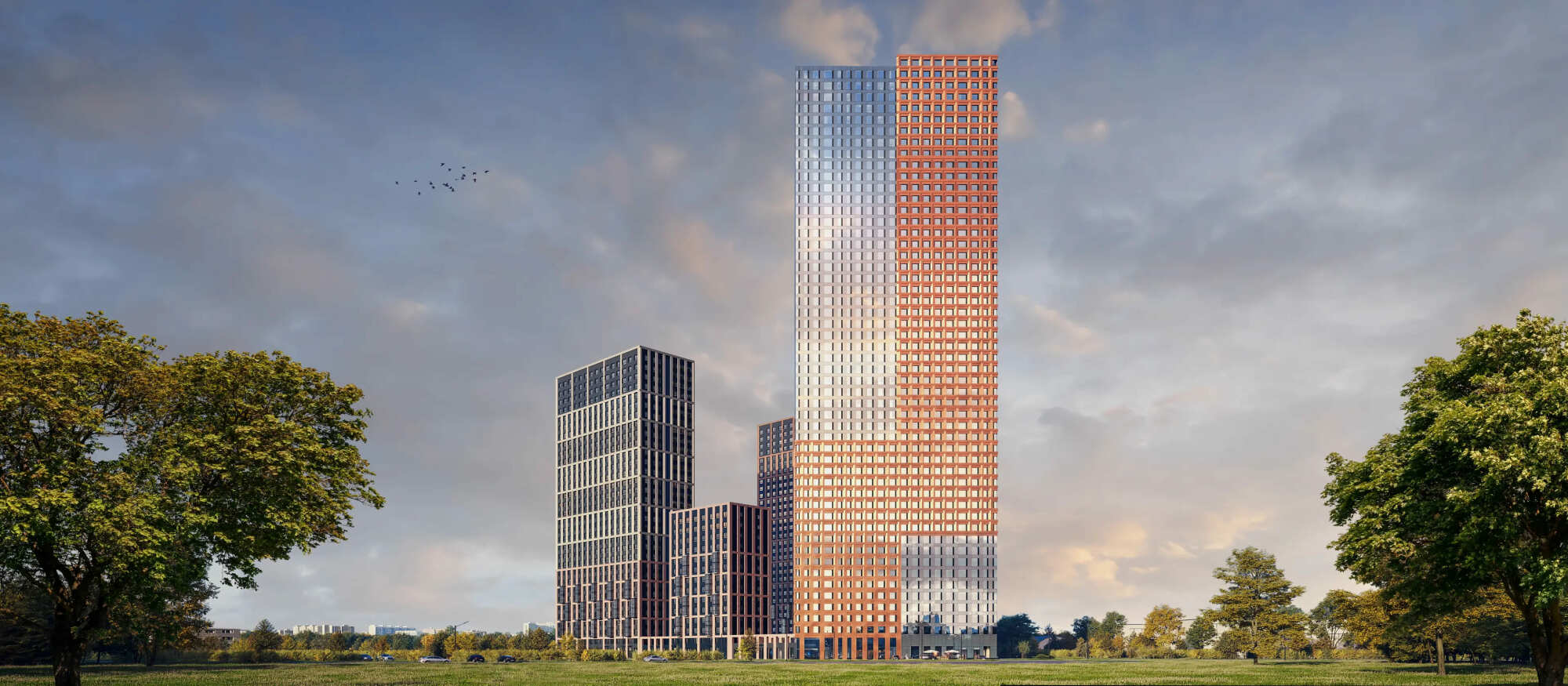 Высотная доминанта квартала — 50-этажная башня корпуса 1.5, которую разрабатывали в бюро Kamen. Архитектура башни учитывает контекст локации, сочетающей влияние большого города и спокойствие лесопарка. Здание совмещает два разных стиля, развивая тему единства противоположностей. На одной стороне башни много стекла, а на другой стороне — металлические панели с завораживающим медным блеском. Из-за высоты дома там предусмотрена продуманная система пожарной безопасности, надёжность которой превышает нормативные требования.